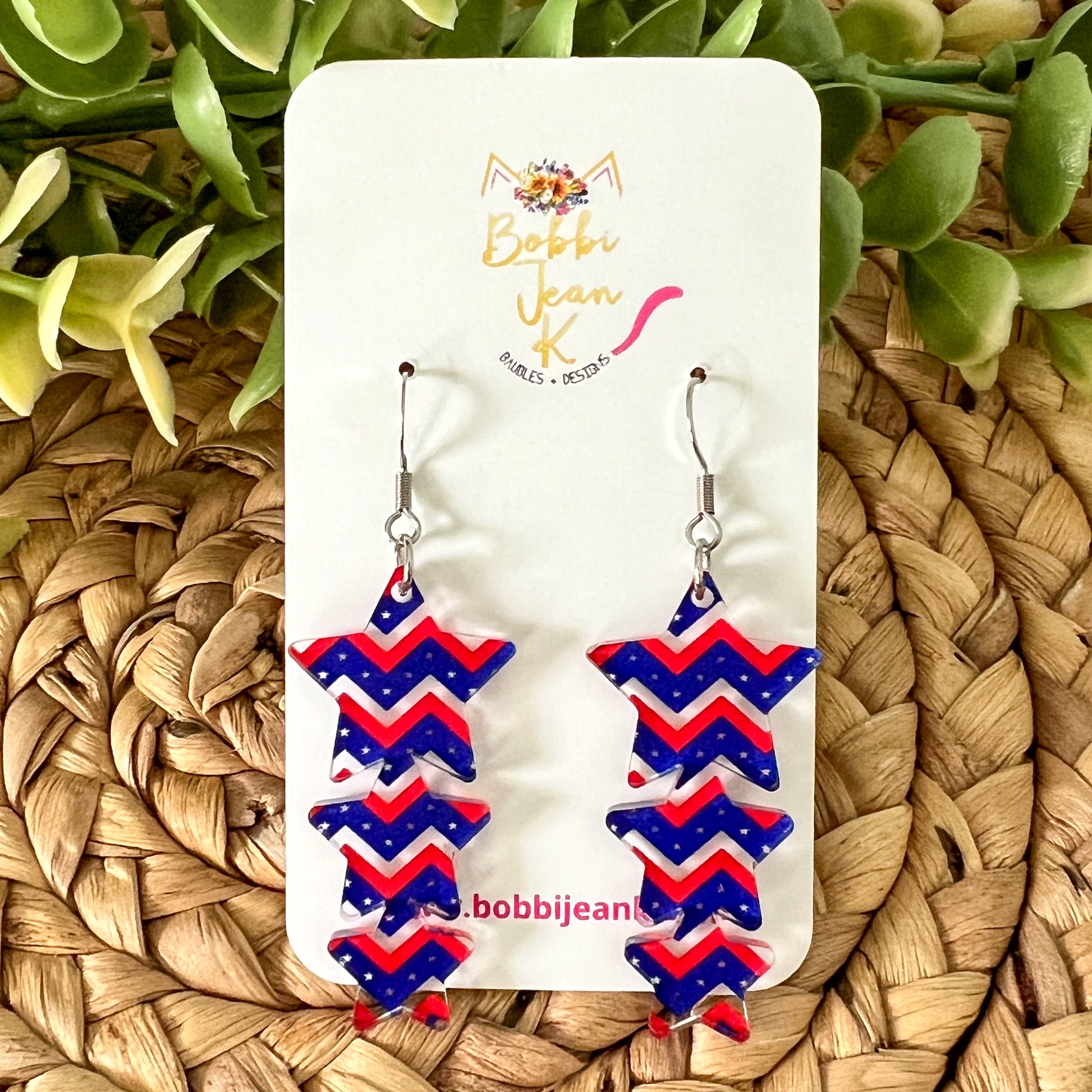 Chevron Stars Acrylic Earrings: Choose From 3 Styles - LAST CHANCE