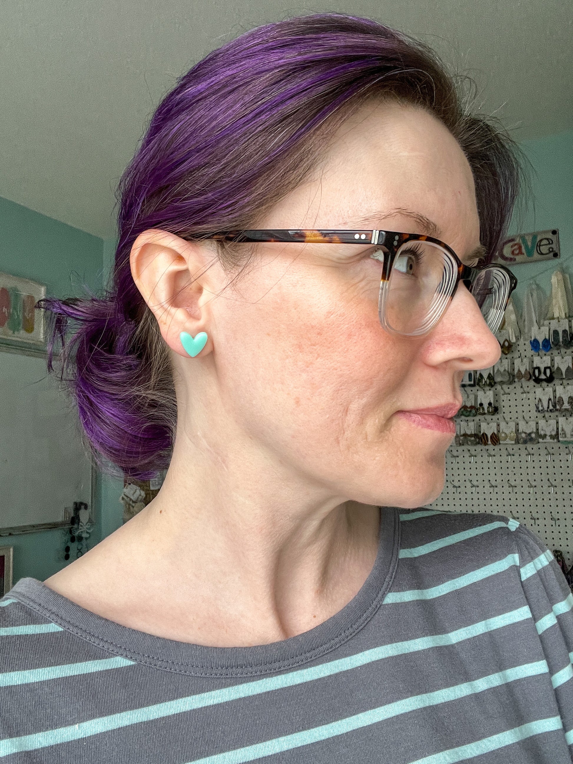 - Ear Wire/Post: Stainless steel posts. Posts have a thin layer of resin to secure the post in place. Each pair of studs comes with silicone backings. If additional silicone backings are desired, they can be purchased HERE.