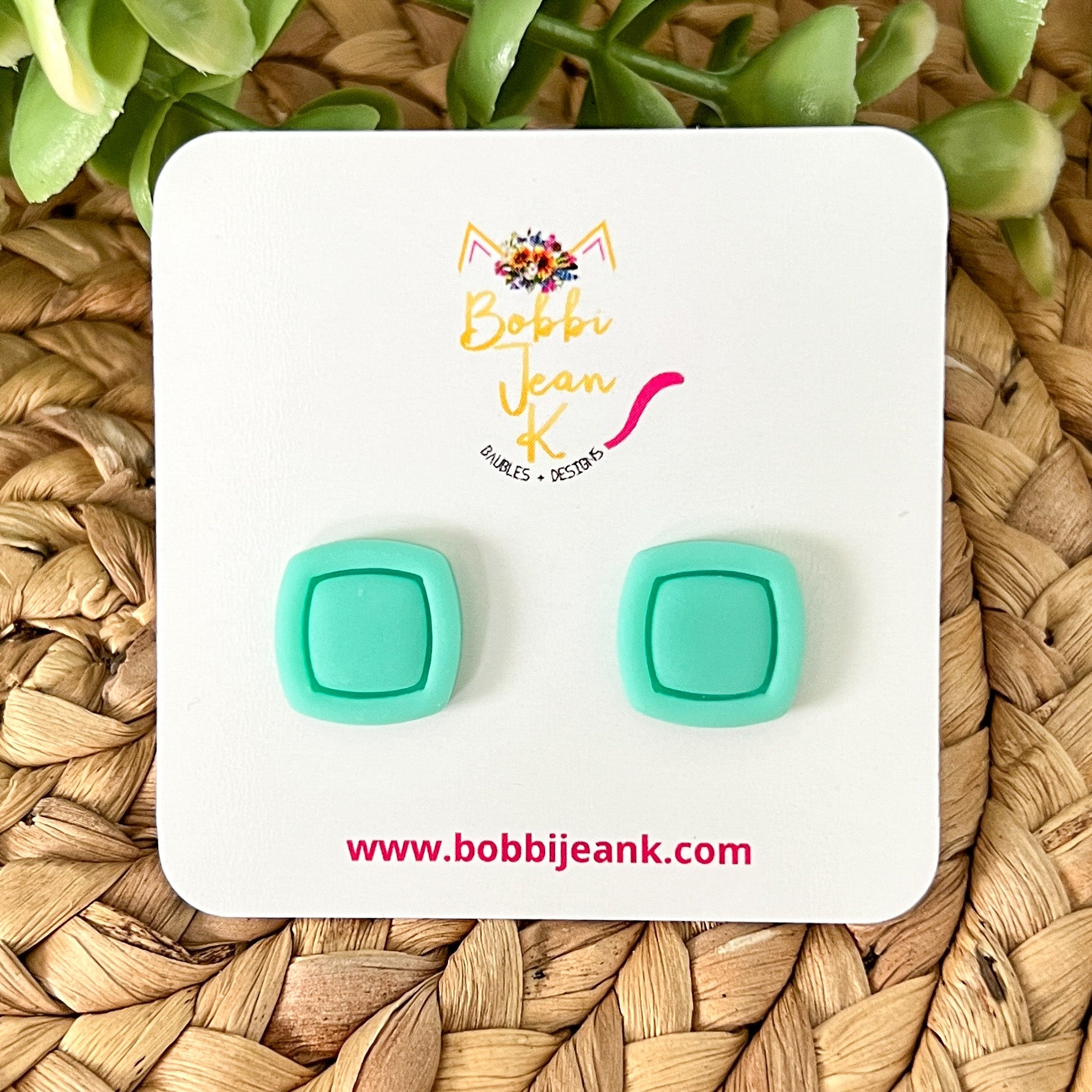 - Style: Mint Green "Piped" Square Clay Studs