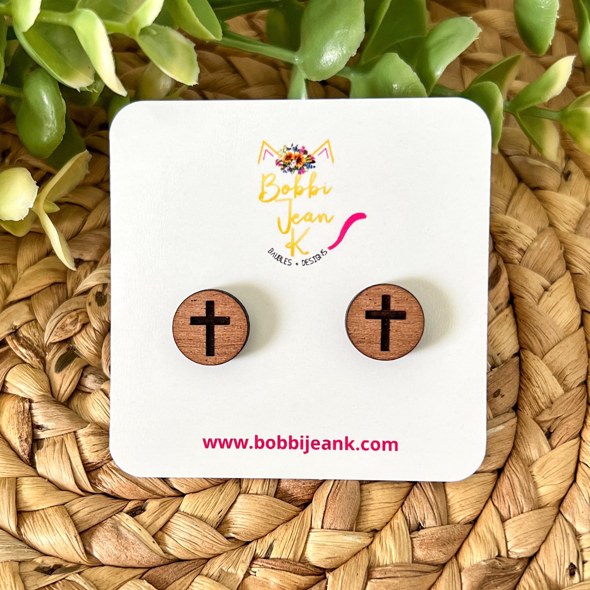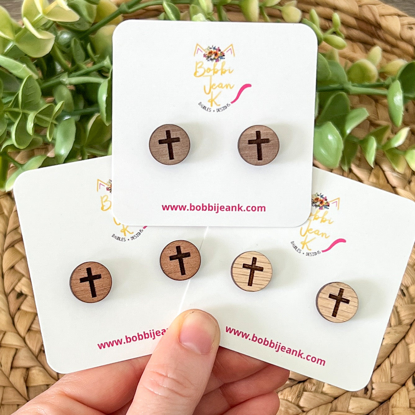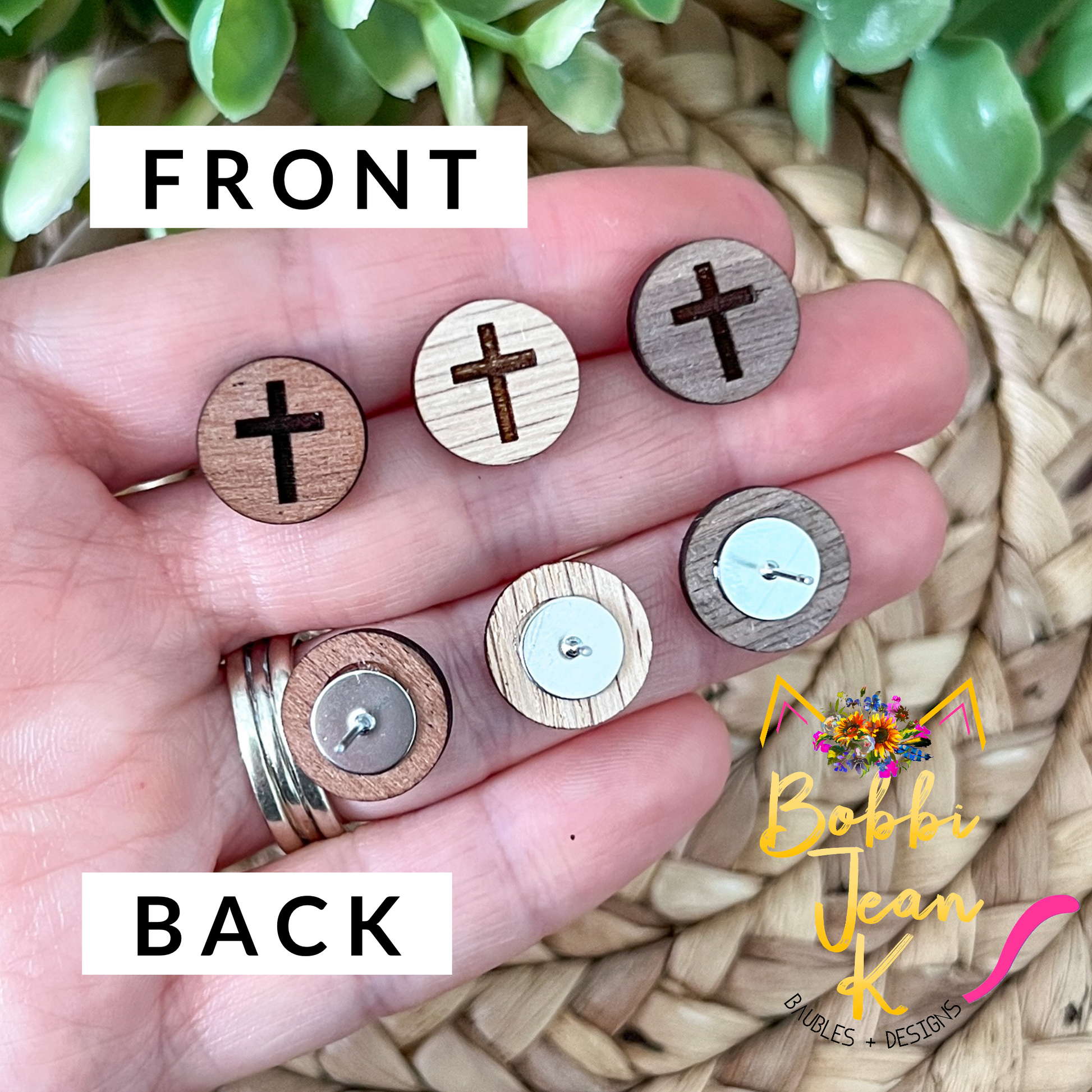 Engraved Cross Wood Studs: Choose From 3 Wood Options