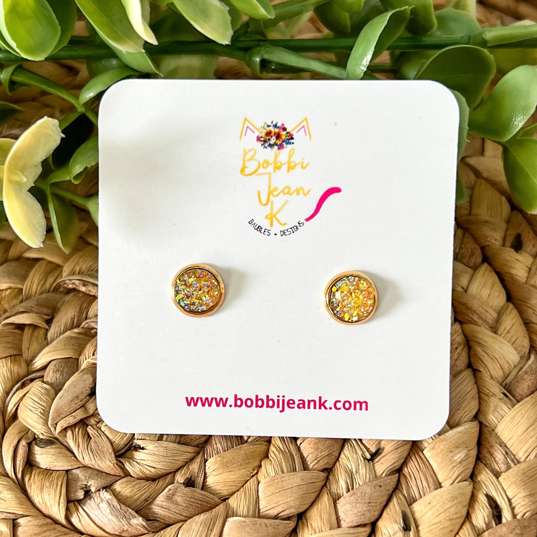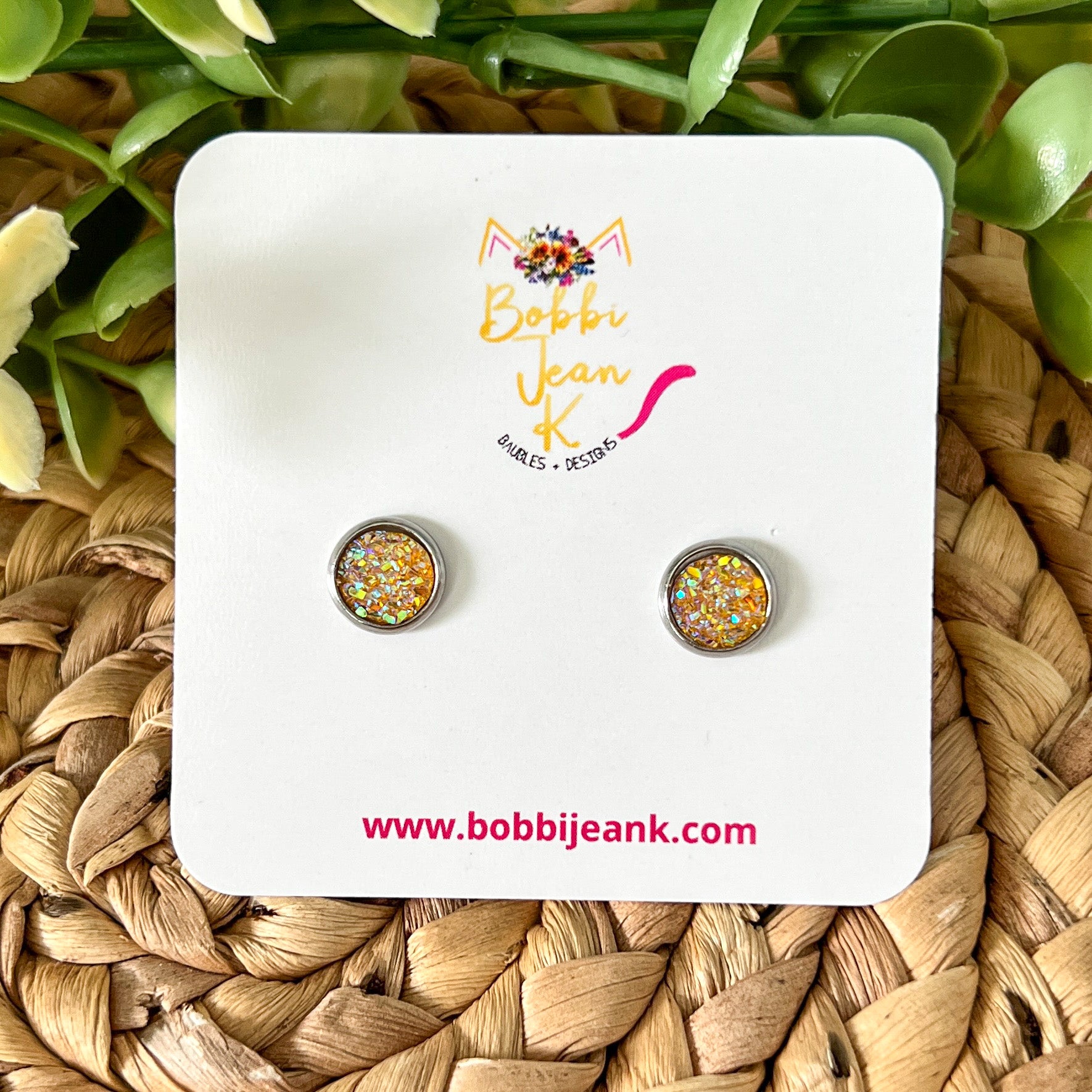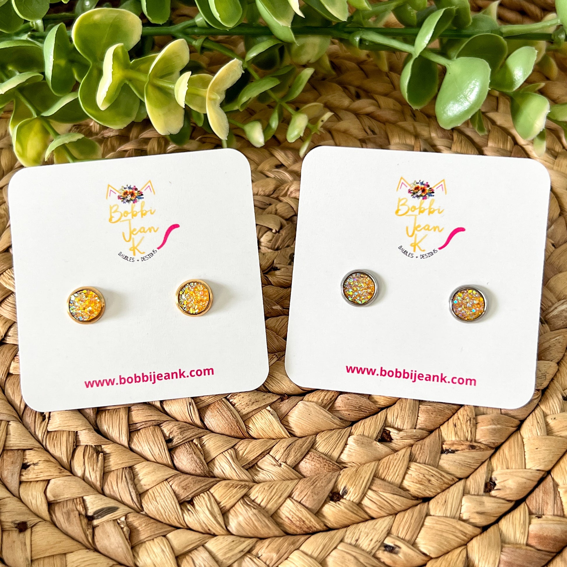 SALE: Yellowed Tangerine Faux Druzy Studs 8mm: Choose Silver or Gold Settings