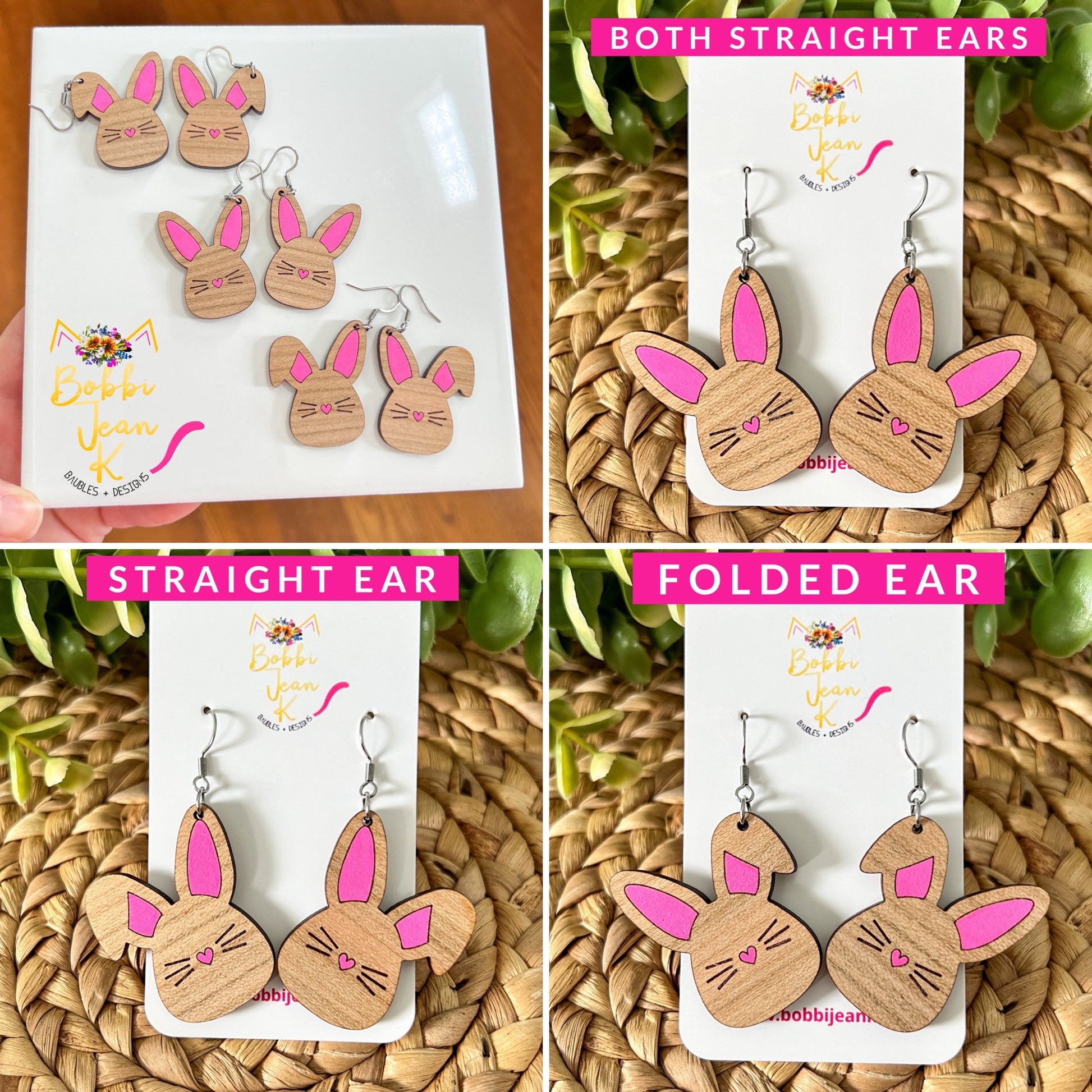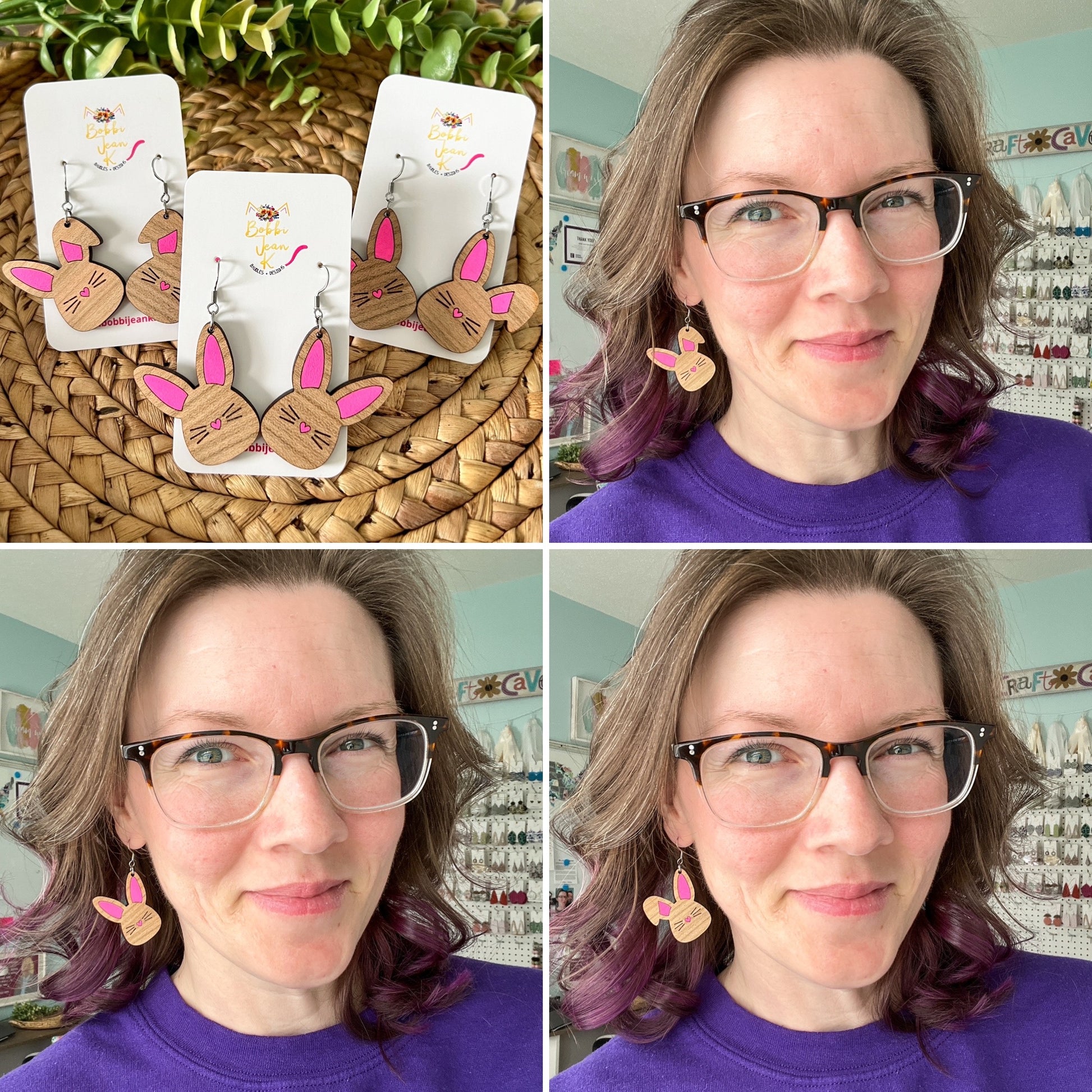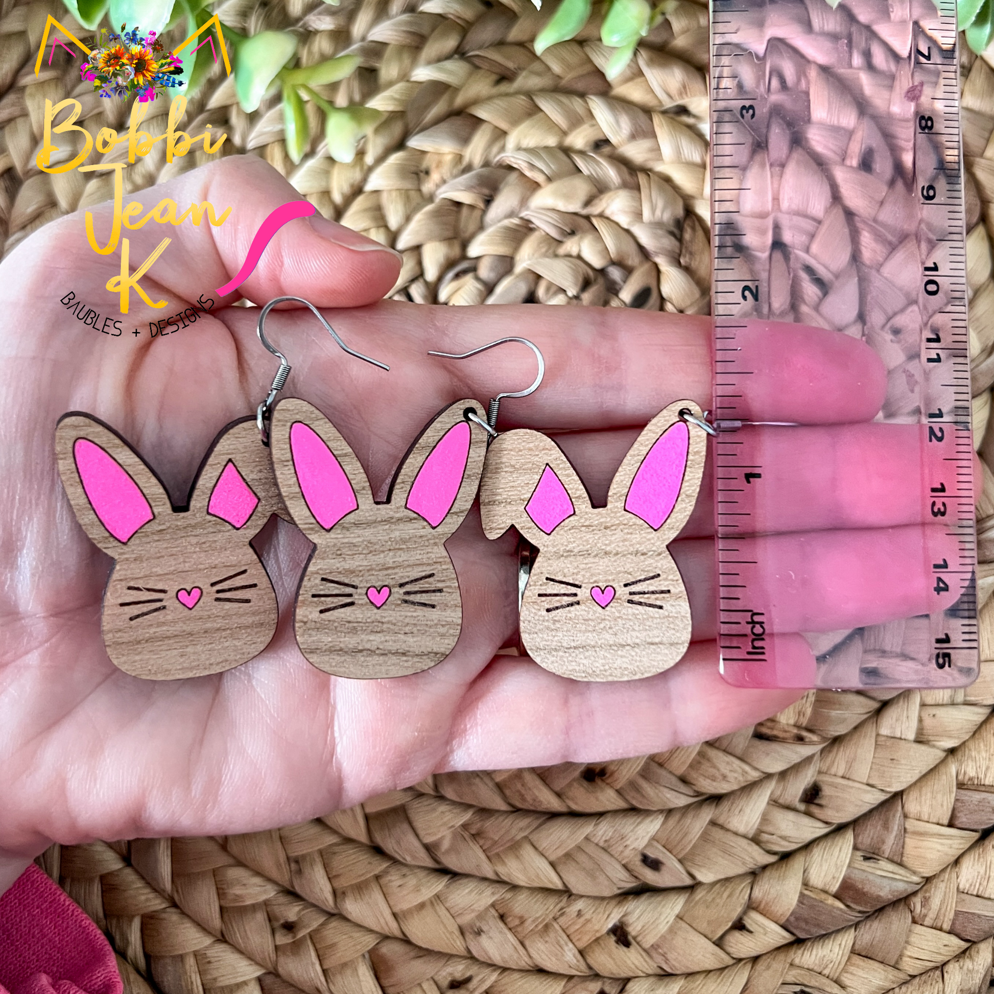 - Style: Hand Painted Bunny Wood Earrings
