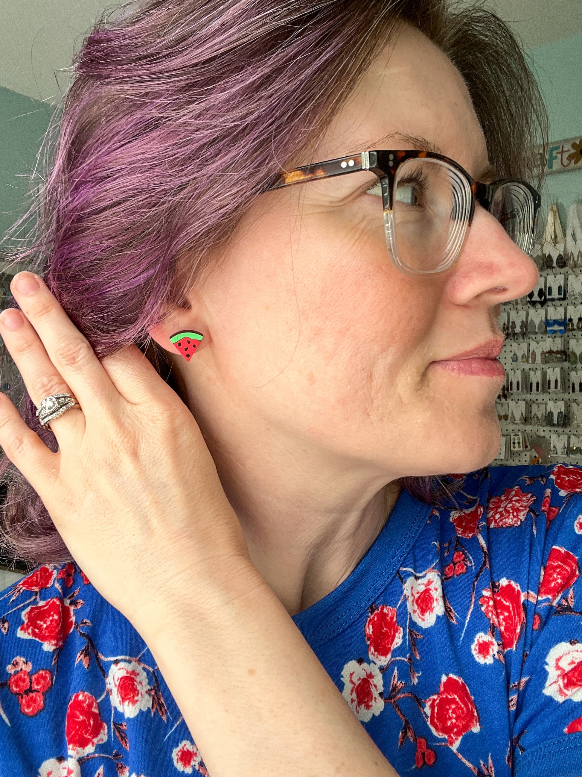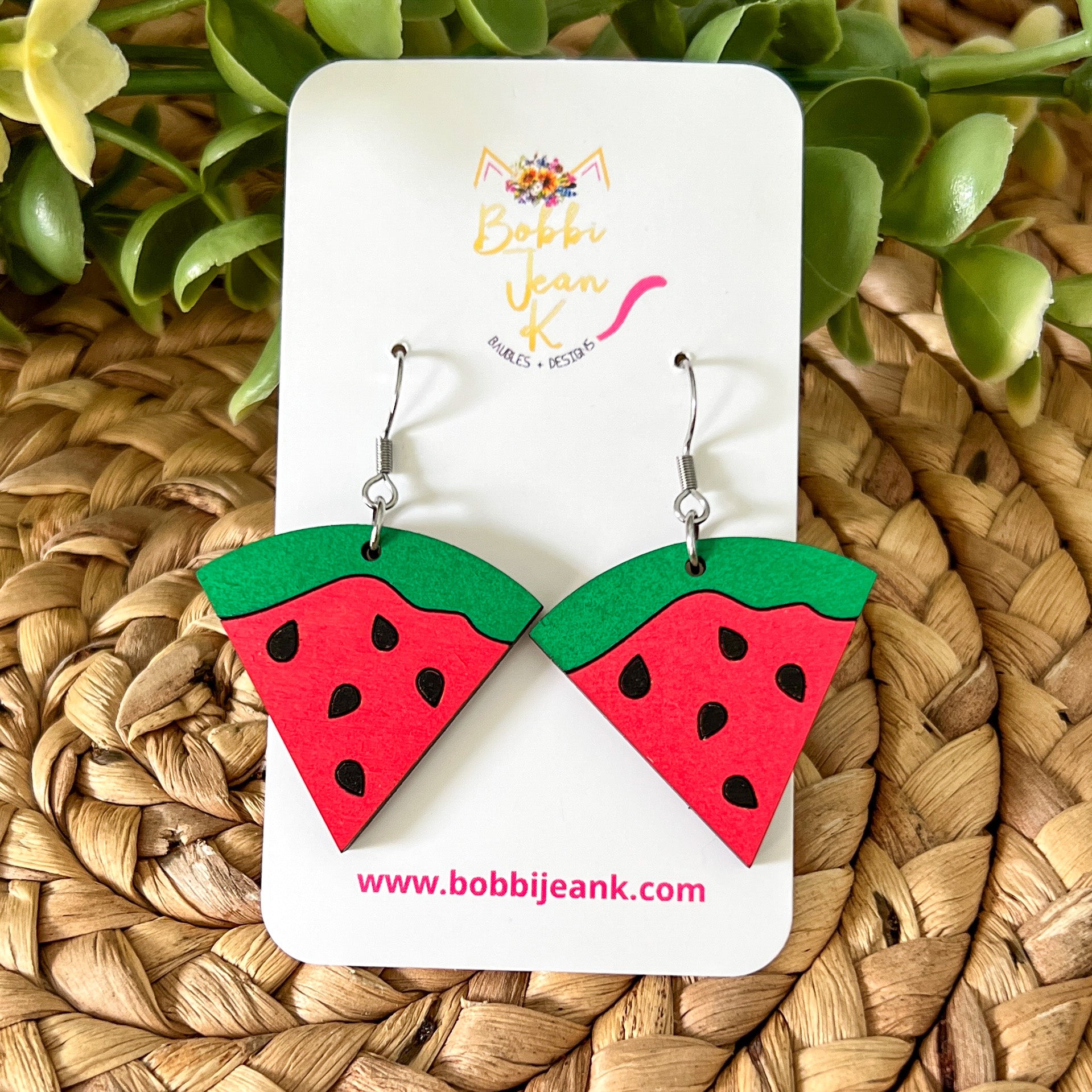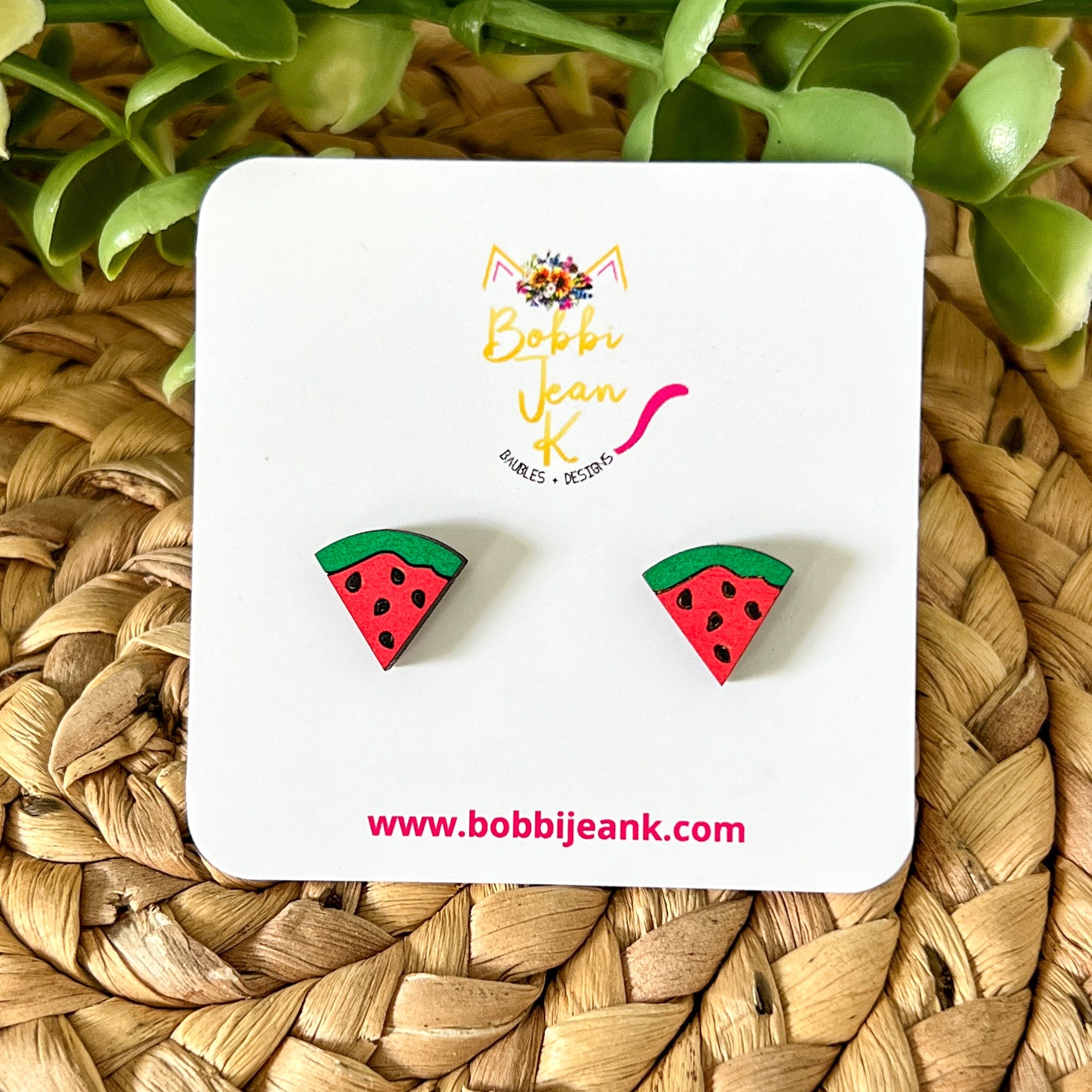 Hand Painted Watermelon Wood Earrings: Choose From Dangle or Stud