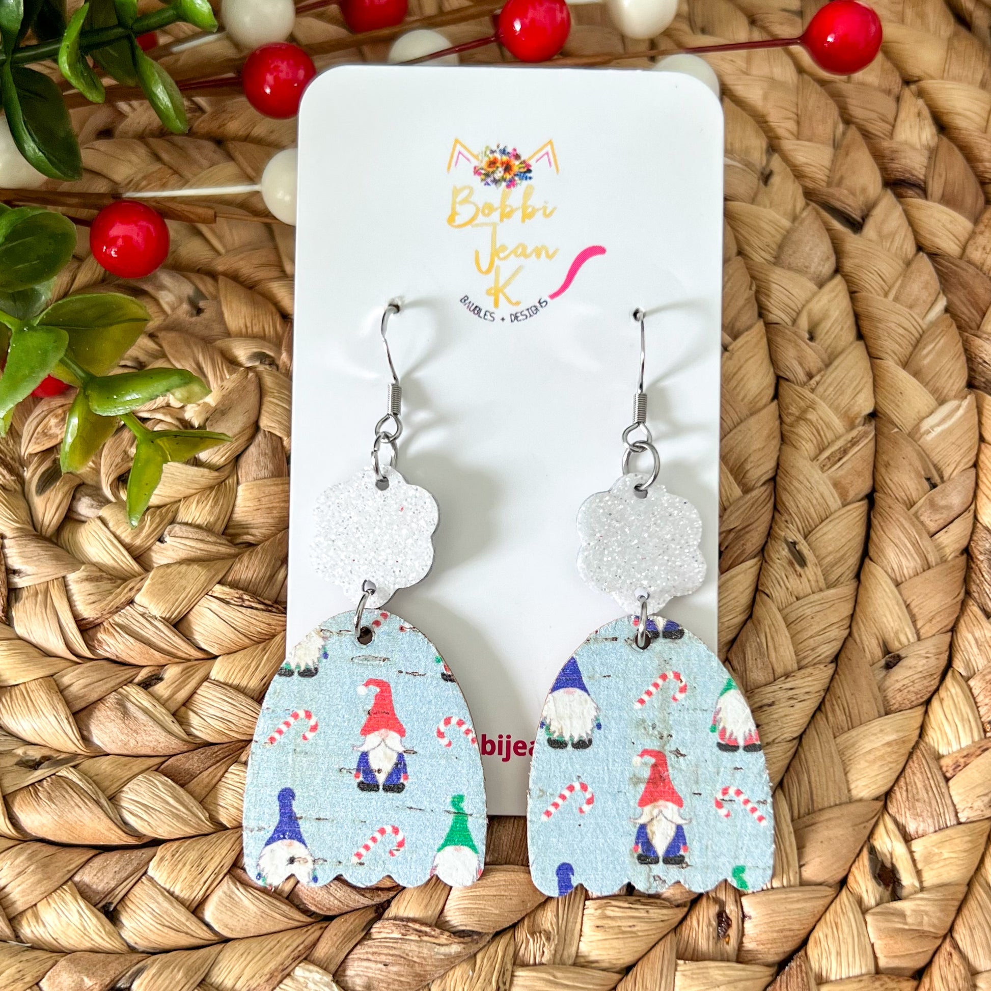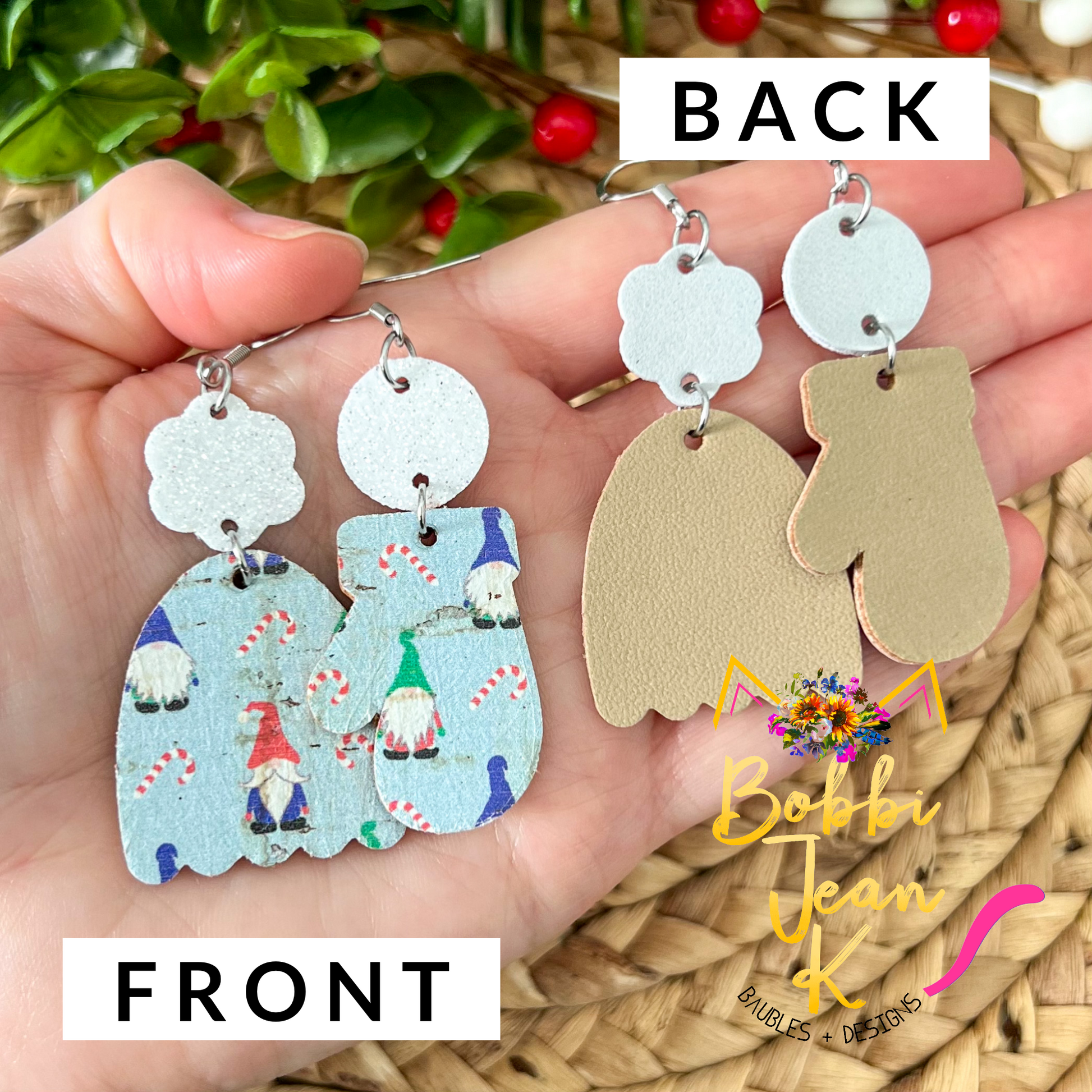 Holiday Gnomes Toboggan & Mitten Cork on Leather Earrings - ONLY ONE TOBOGGAN LEFT