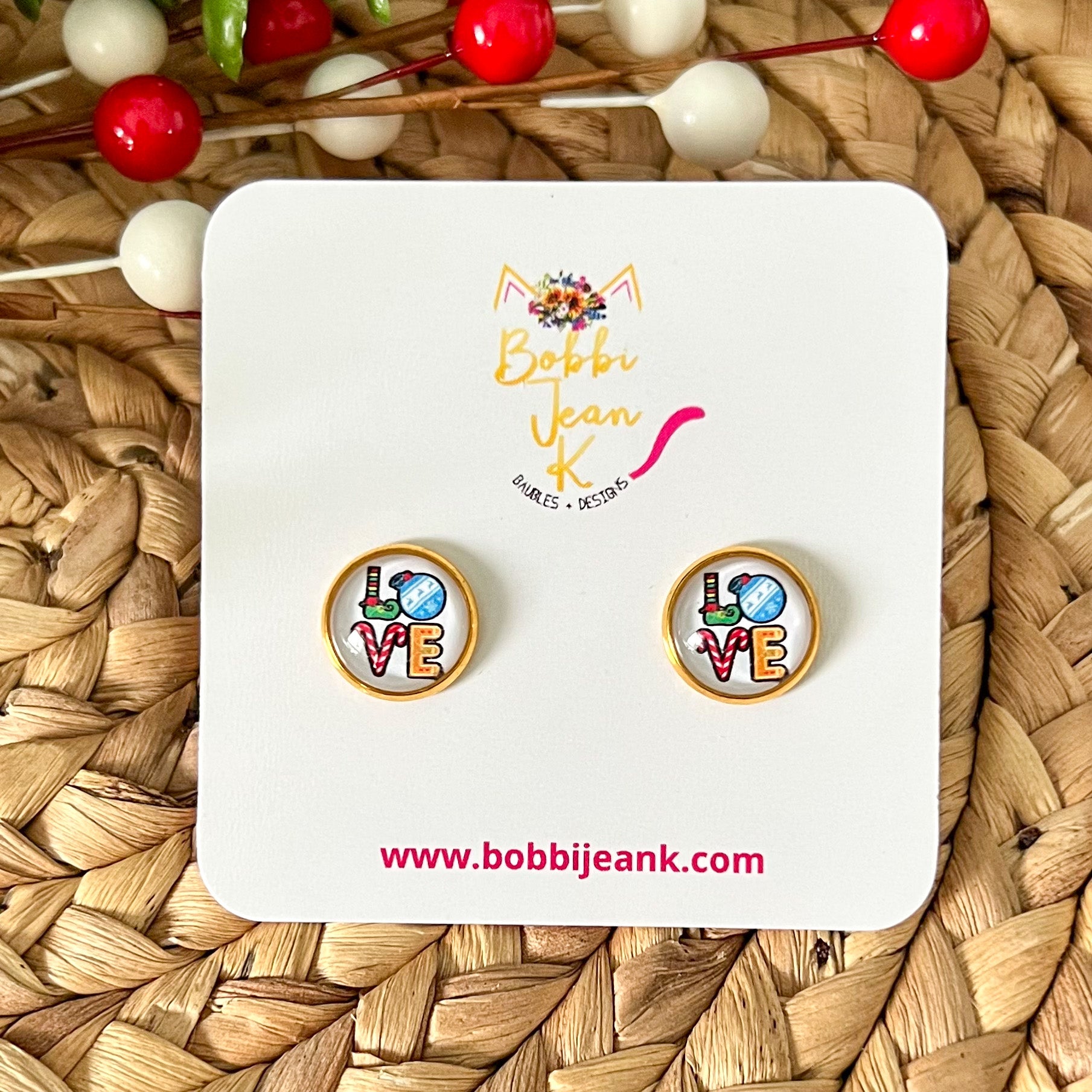SALE: Holiday Love Glass Studs 12mm: Choose Silver or Gold Settings - LAST CHANCE