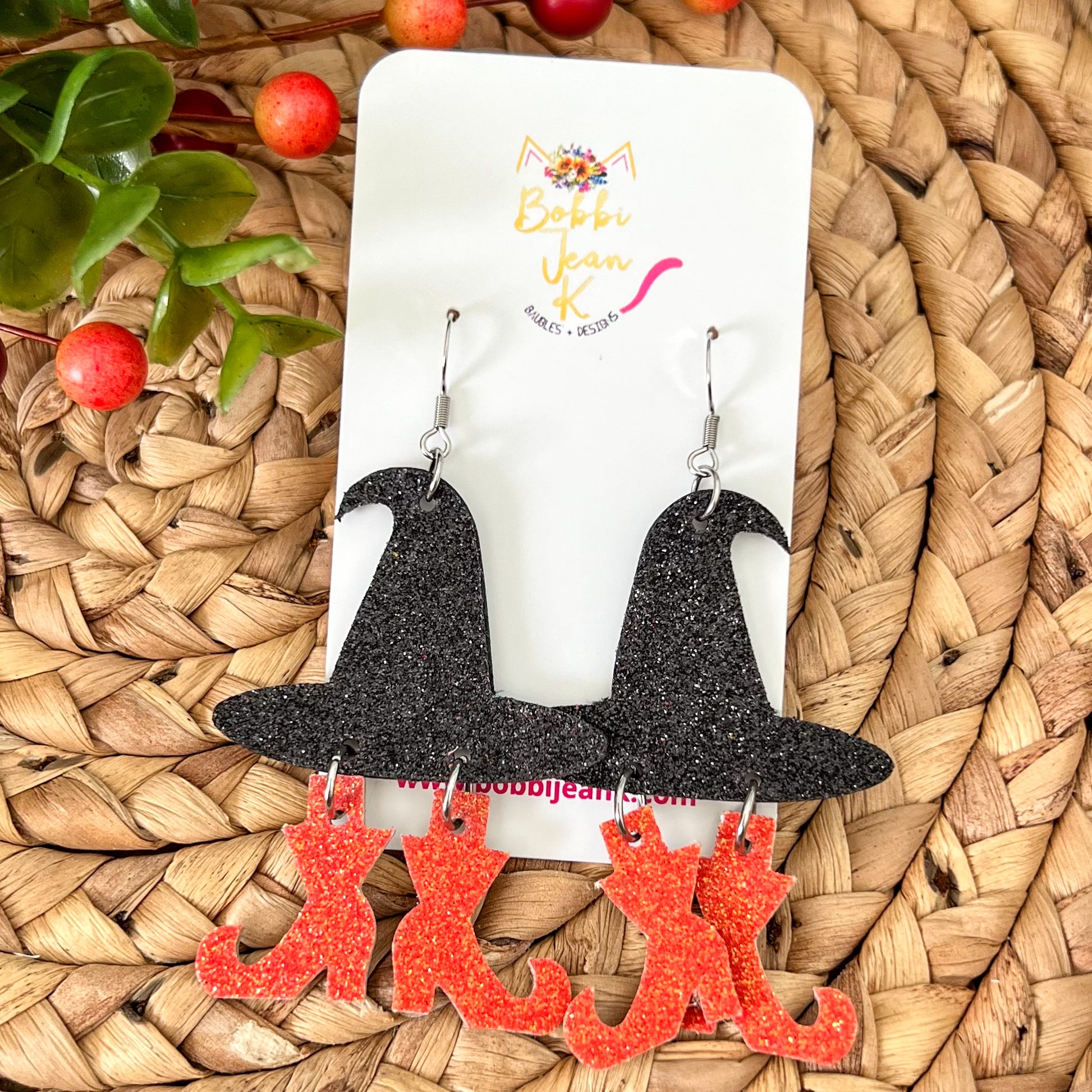Infused Glitter Witch Hat & Boot Leather Earrings: Choose From 4 Color Options