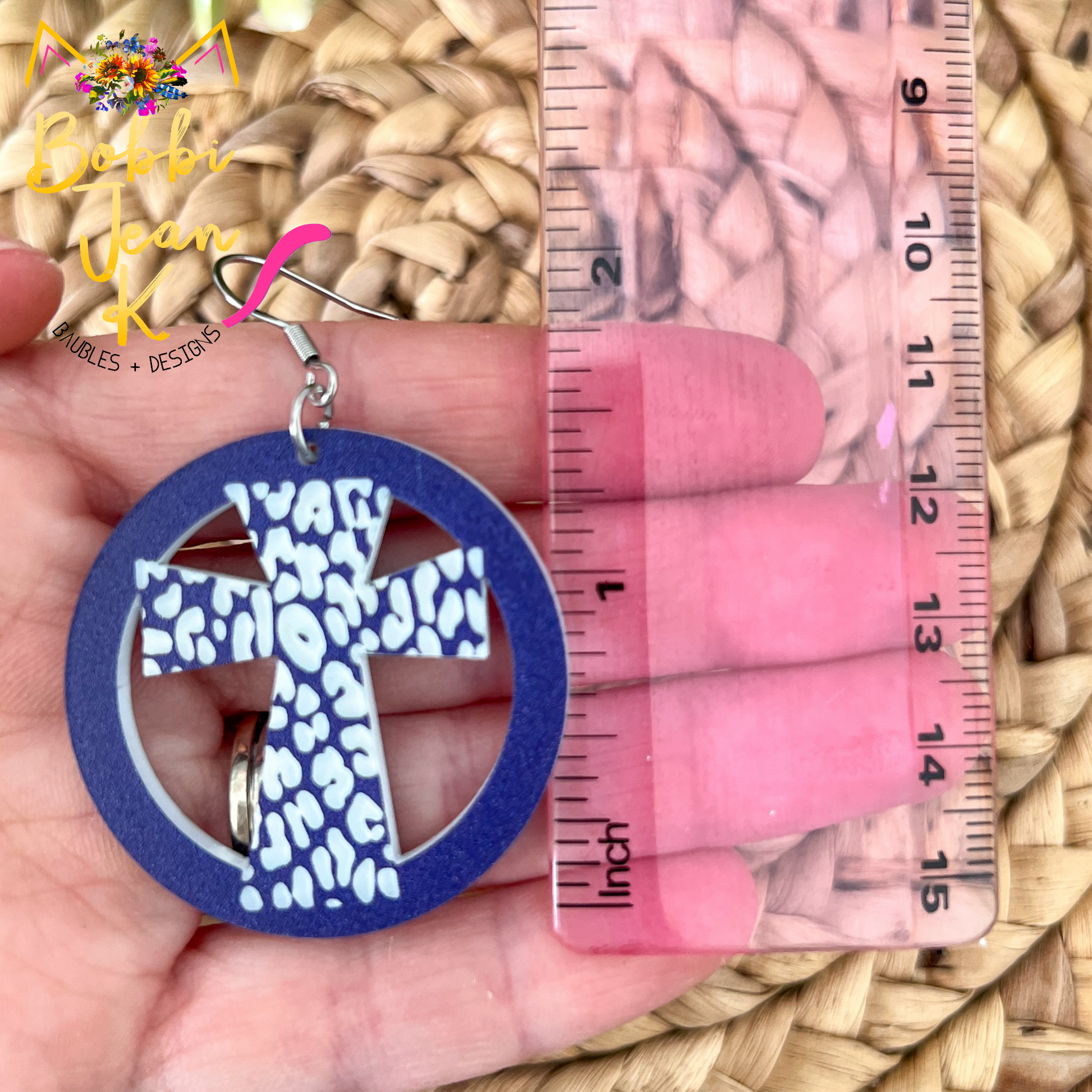 Leopard Engraved Circular Cross Acrylic Earrings: Choose From 3 Colors - LAST CHANCE - DESIGN BEING DISCONTINUED (Was $16)