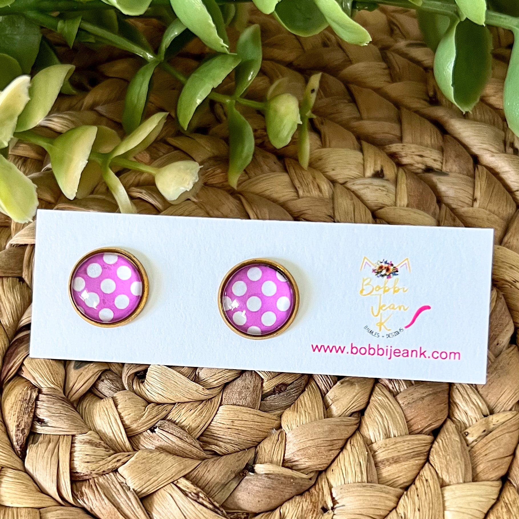 SALE: Lilac Polka Dotted Glass Studs 12mm: Choose Silver or Gold Settings - LAST CHANCE