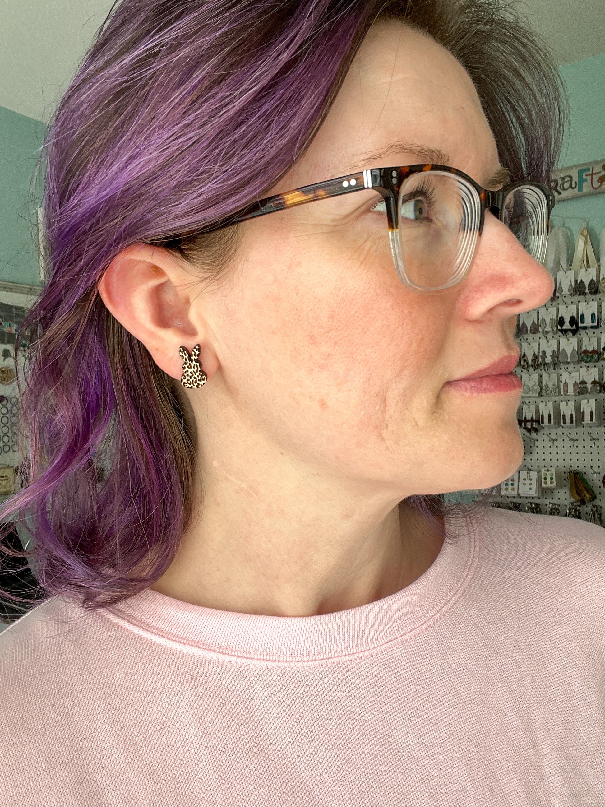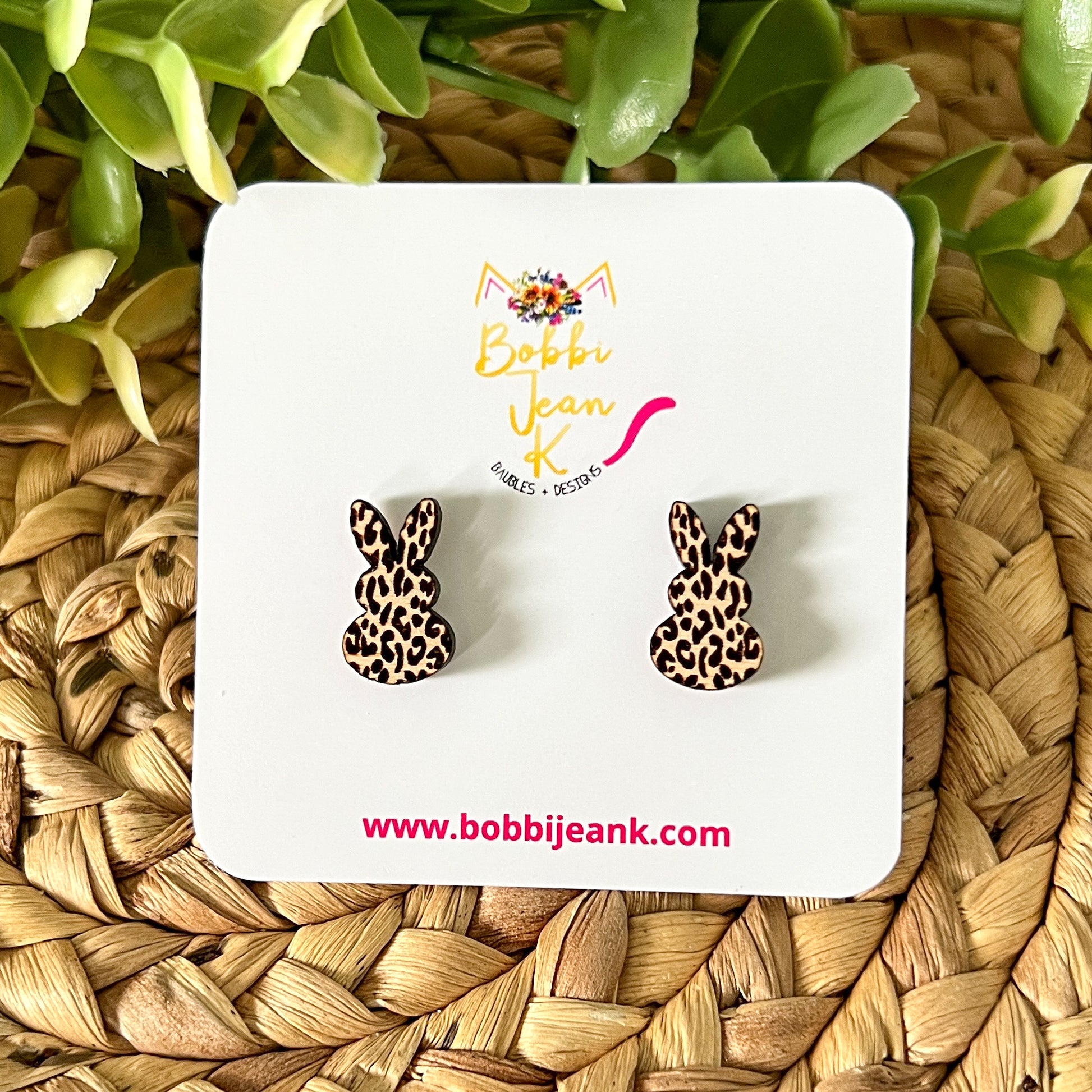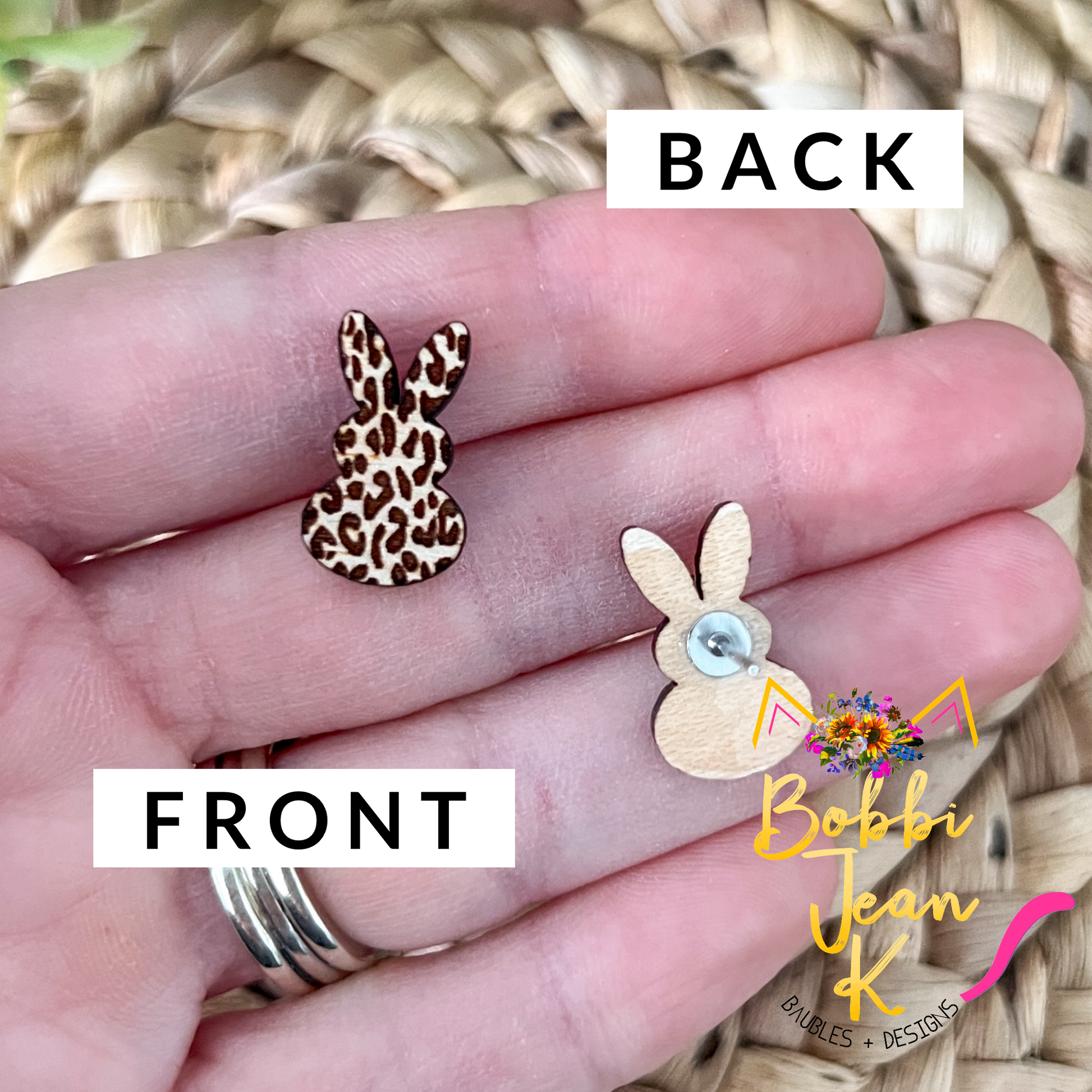 Leopard Engraved Wood Bunny Studs - LAST CHANCE - DESIGN BEING DISCONTINUED