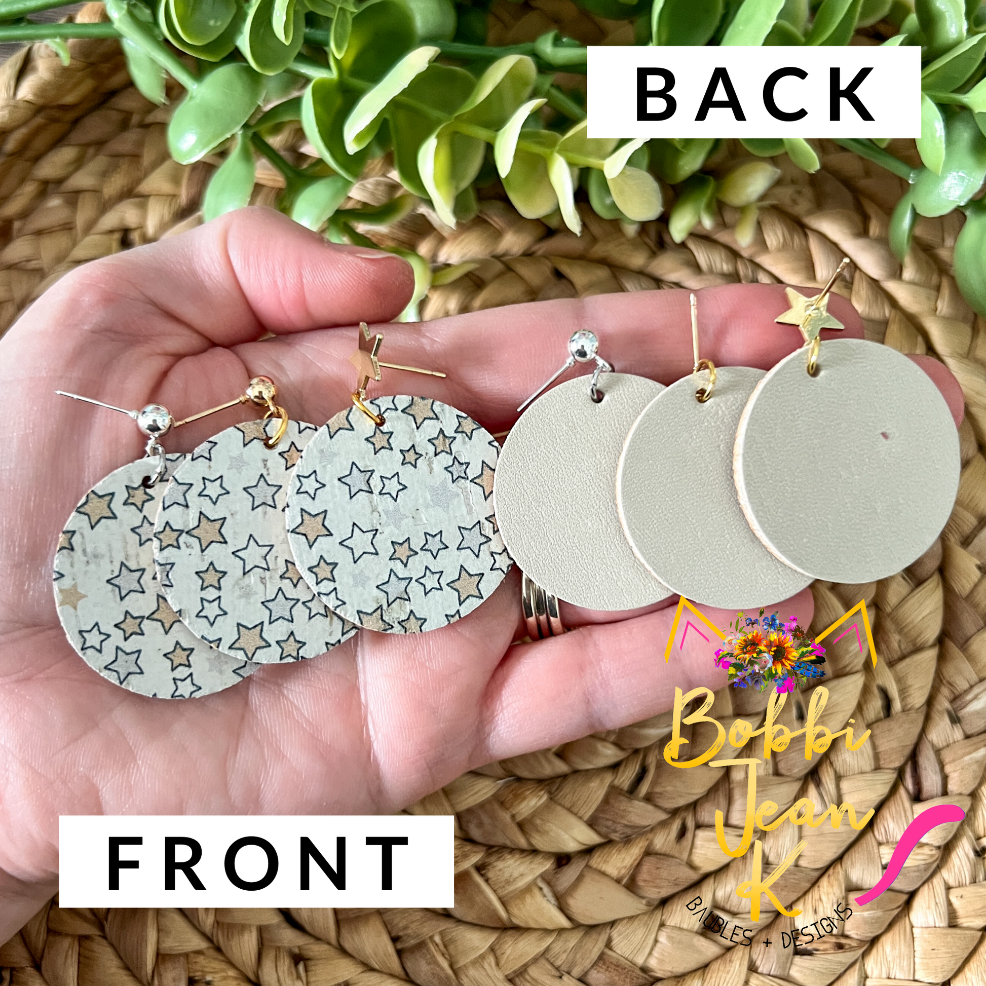 - Style: Mini Stars Cork on Leather Circle Earrings