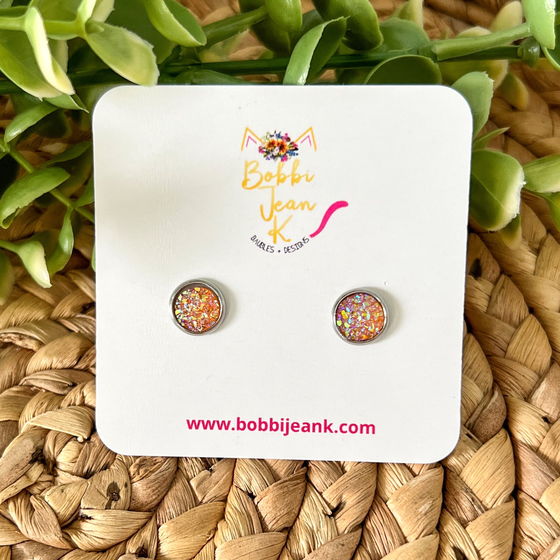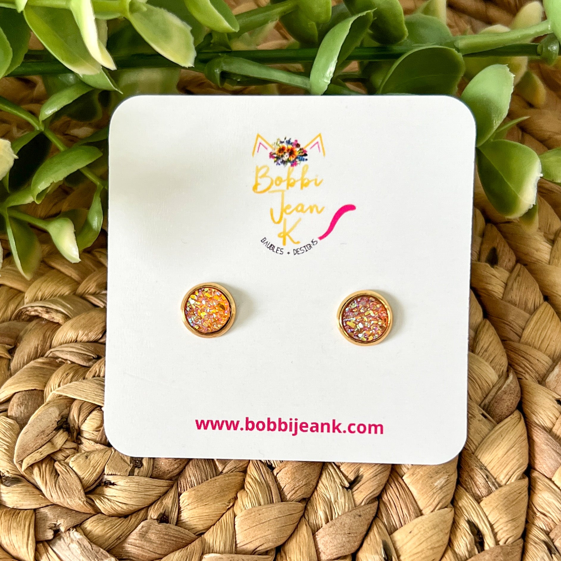 SALE: Orange Faux Druzy Studs 8mm: Choose Silver or Gold Settings
