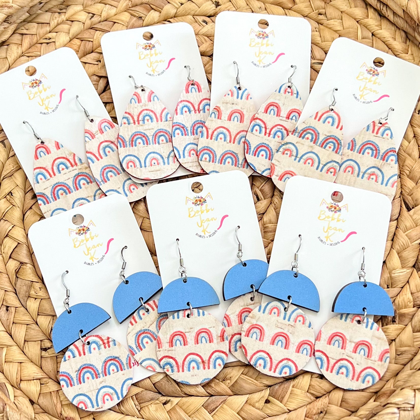 Patriotic Retro Rainbow Cork on Leather Earrings: Choose From 2 Shape Options - LAST CHANCE