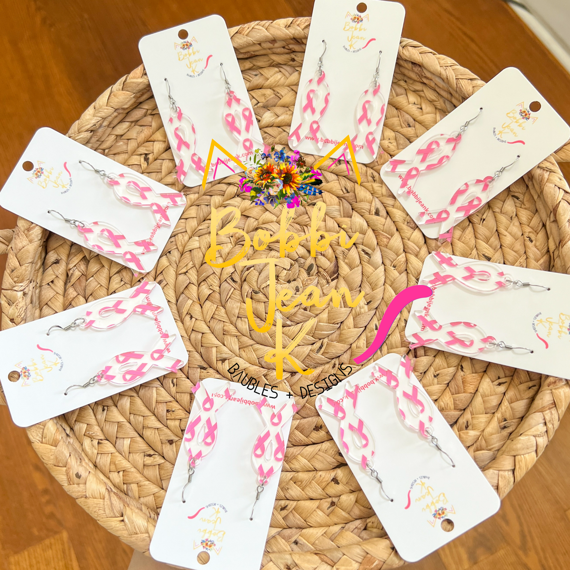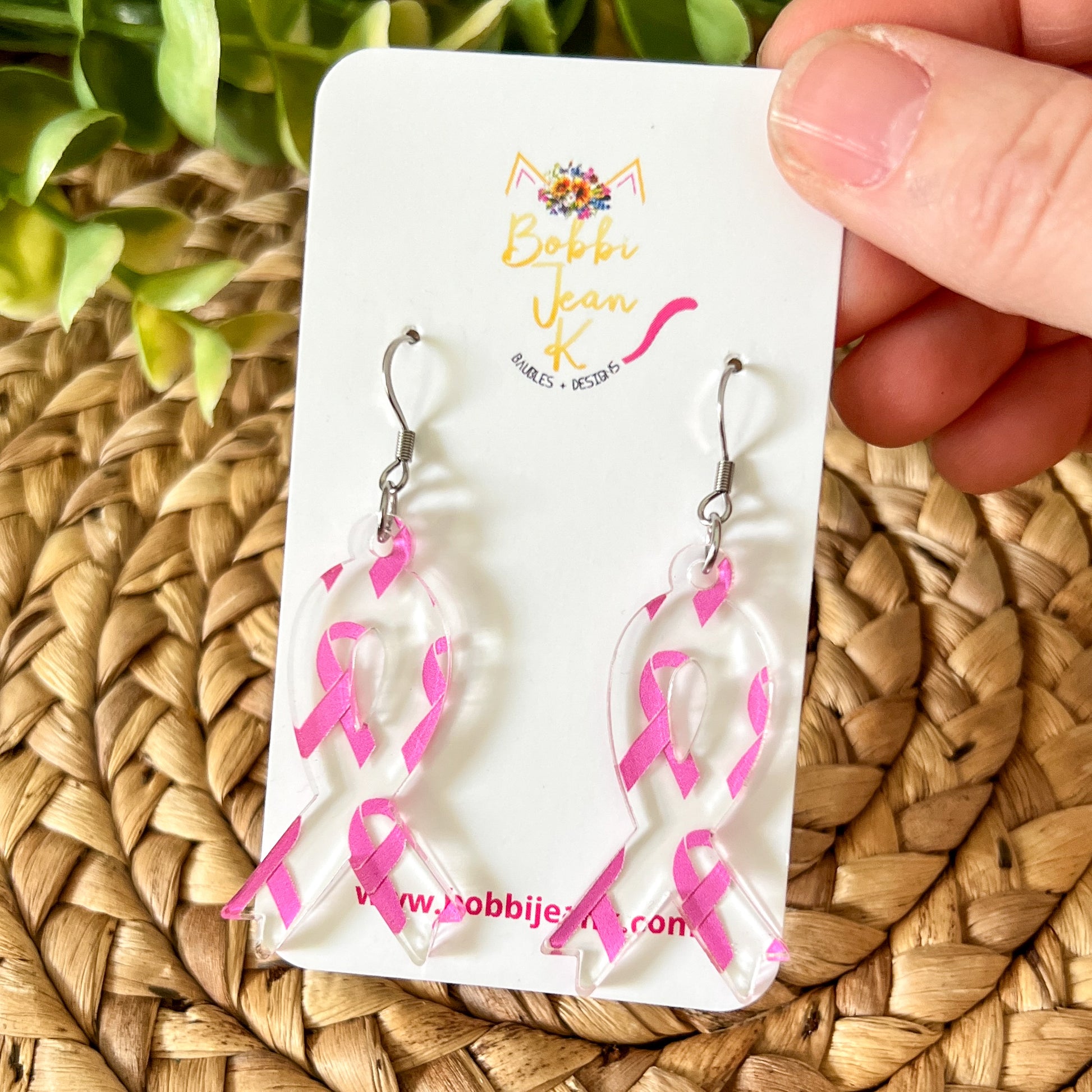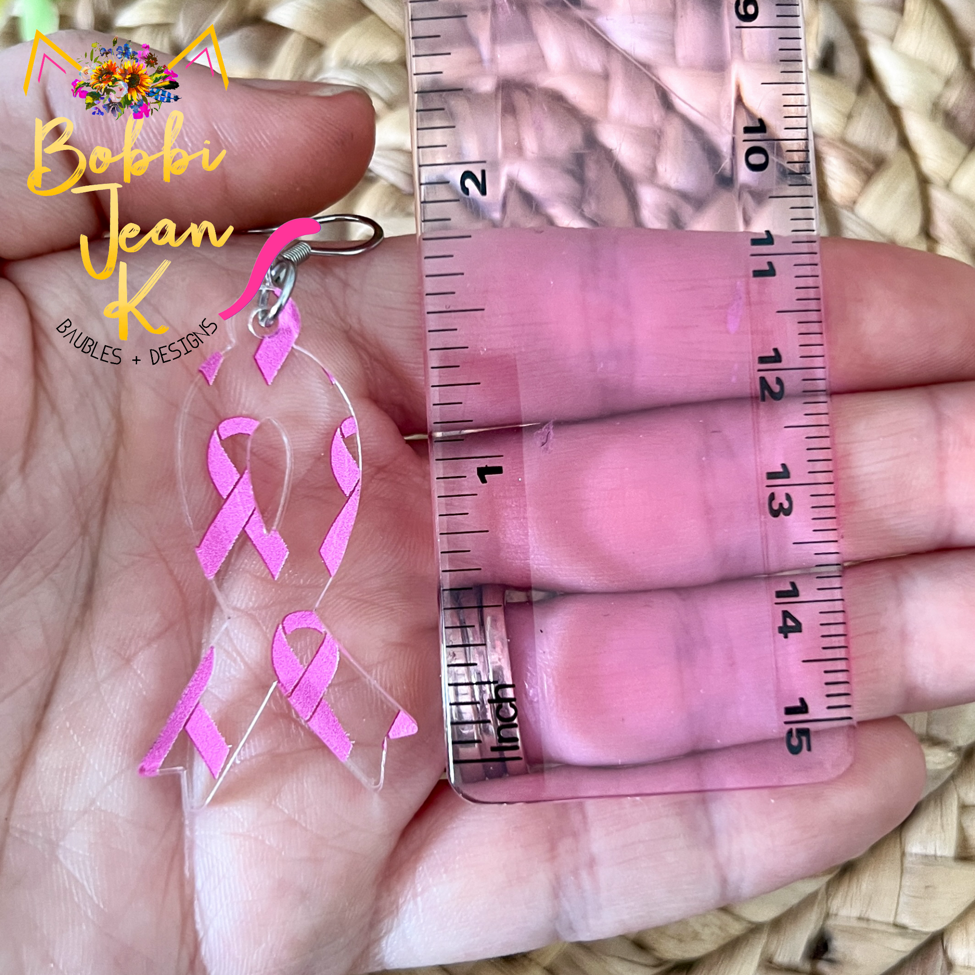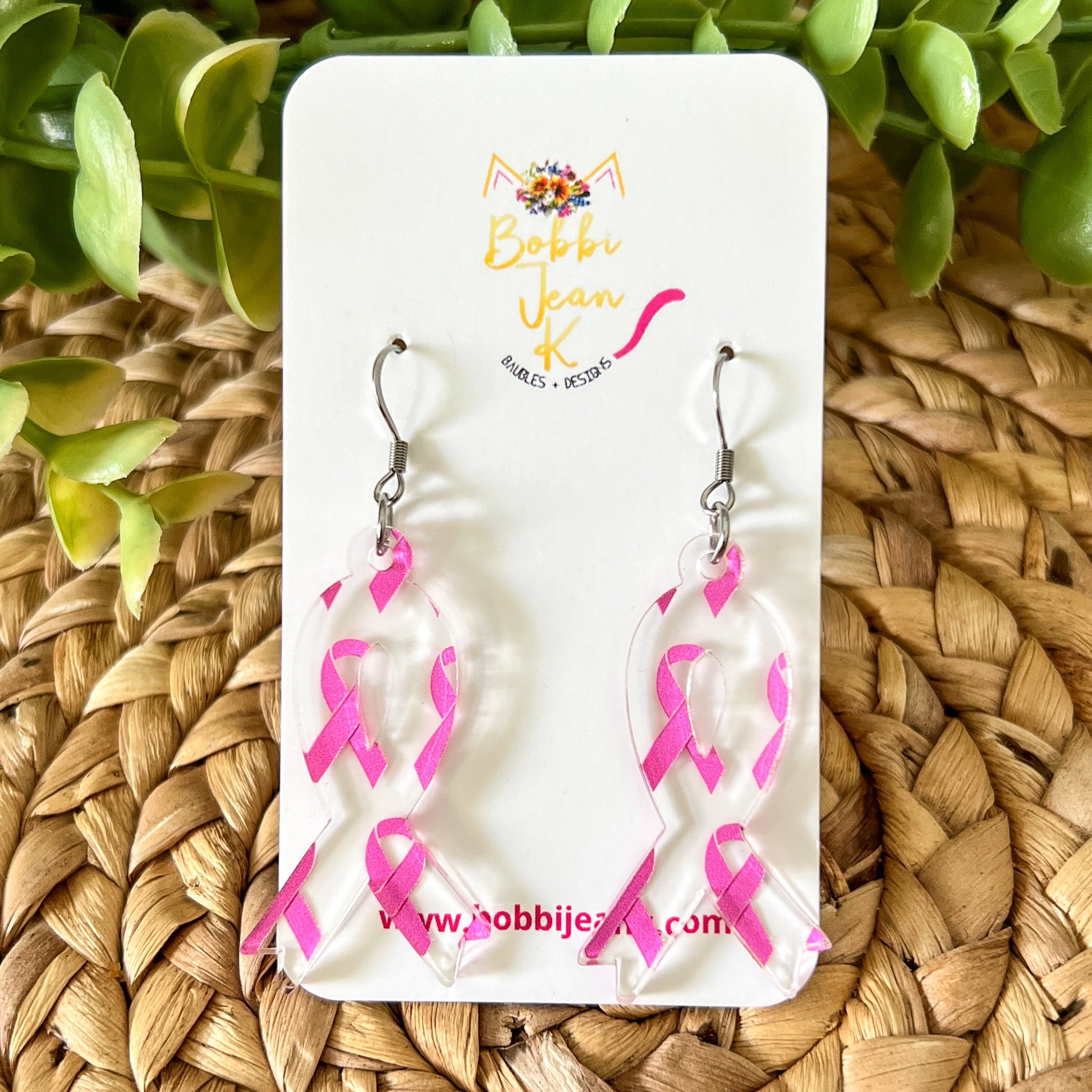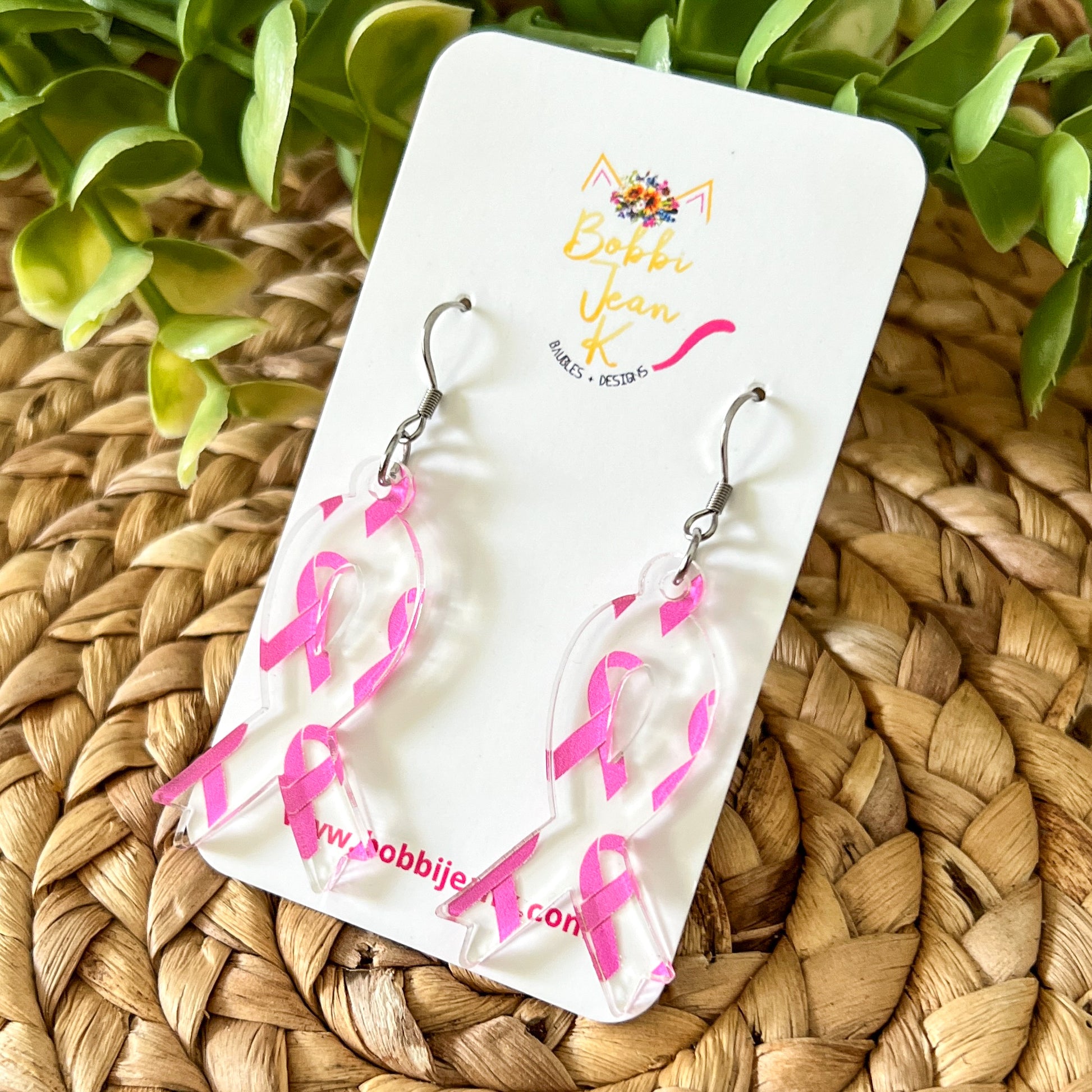 - Style: Pink Ribbon Acrylic Awareness Ribbon Earrings