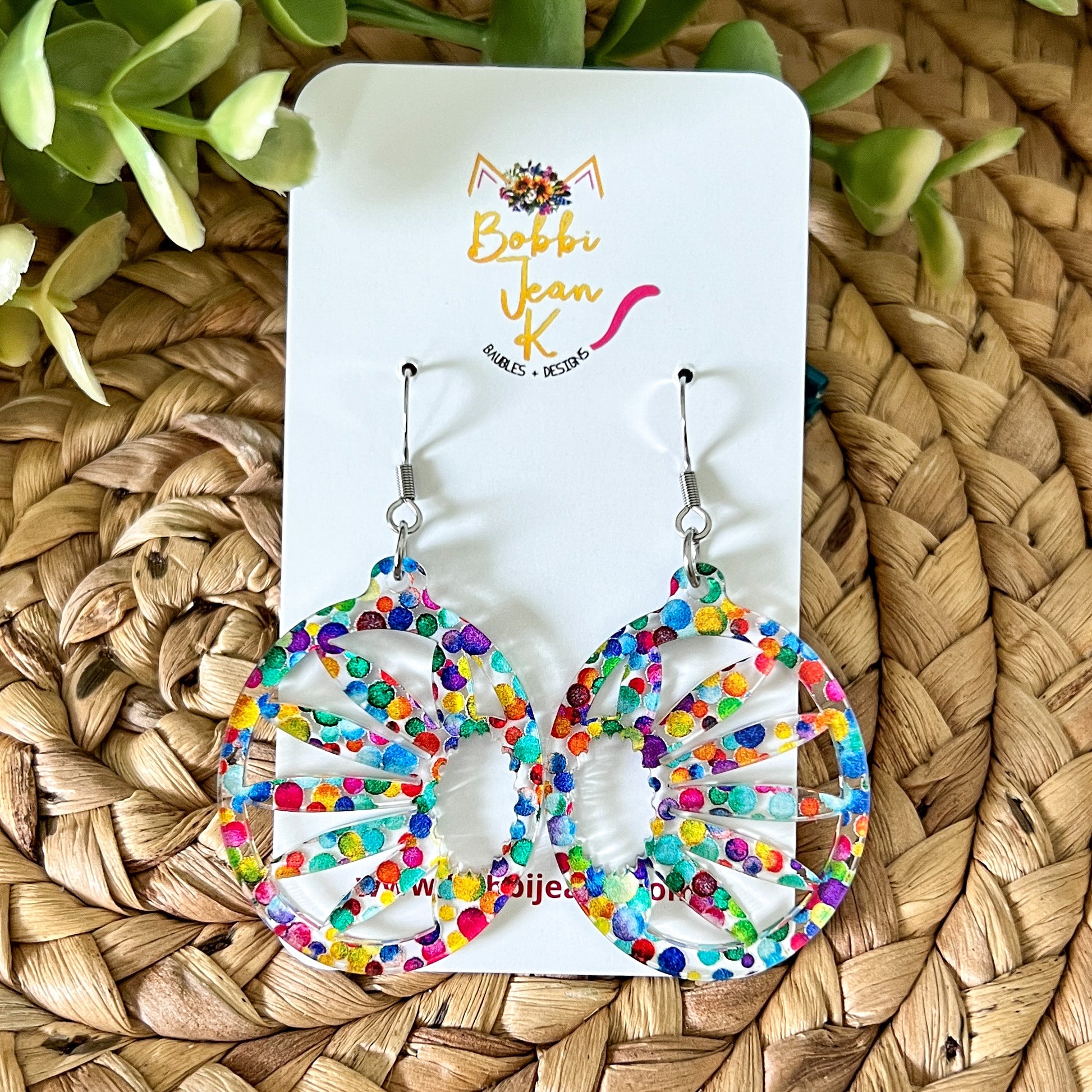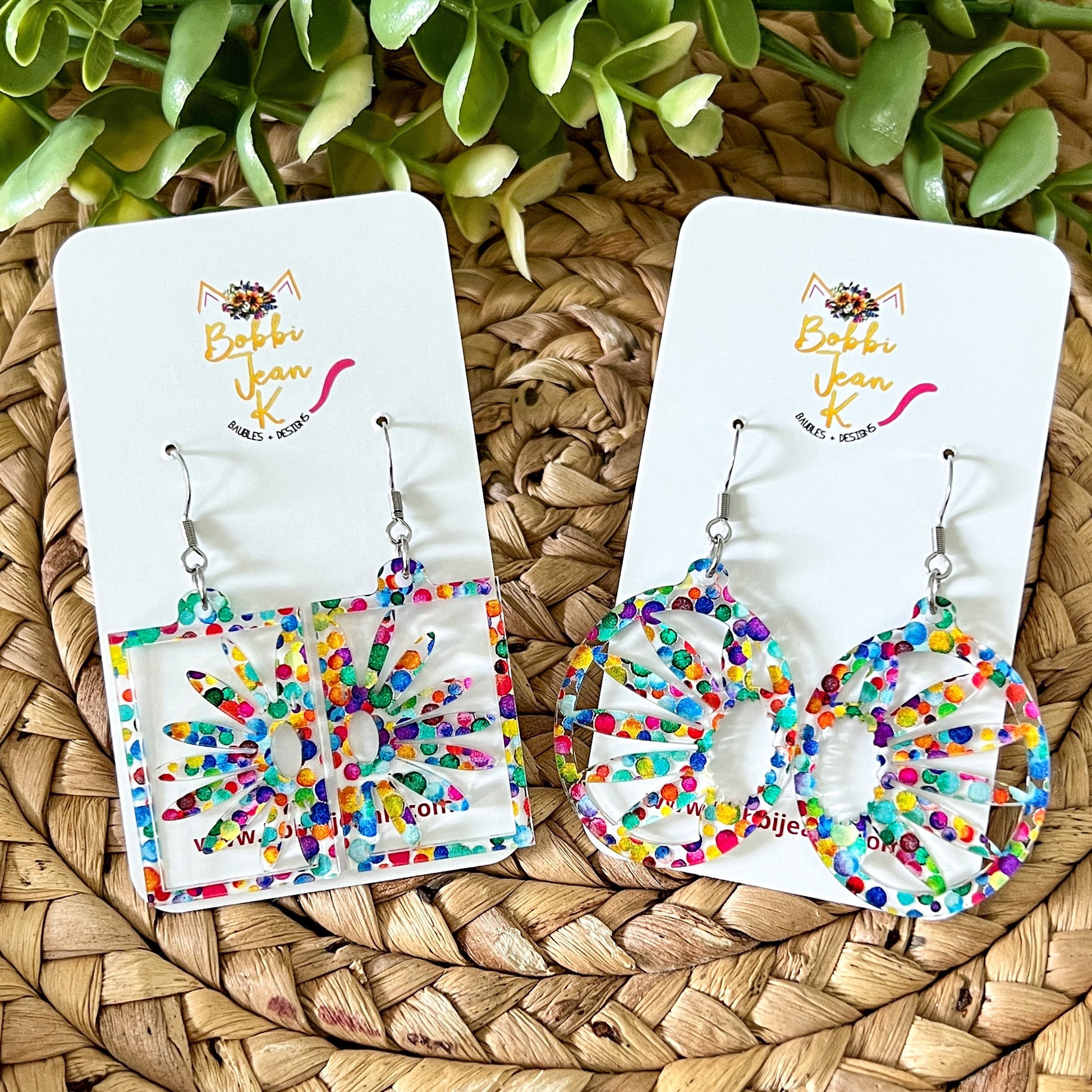 Rainbow Dots Acrylic Daisy Earrings: Choose From 2 Styles