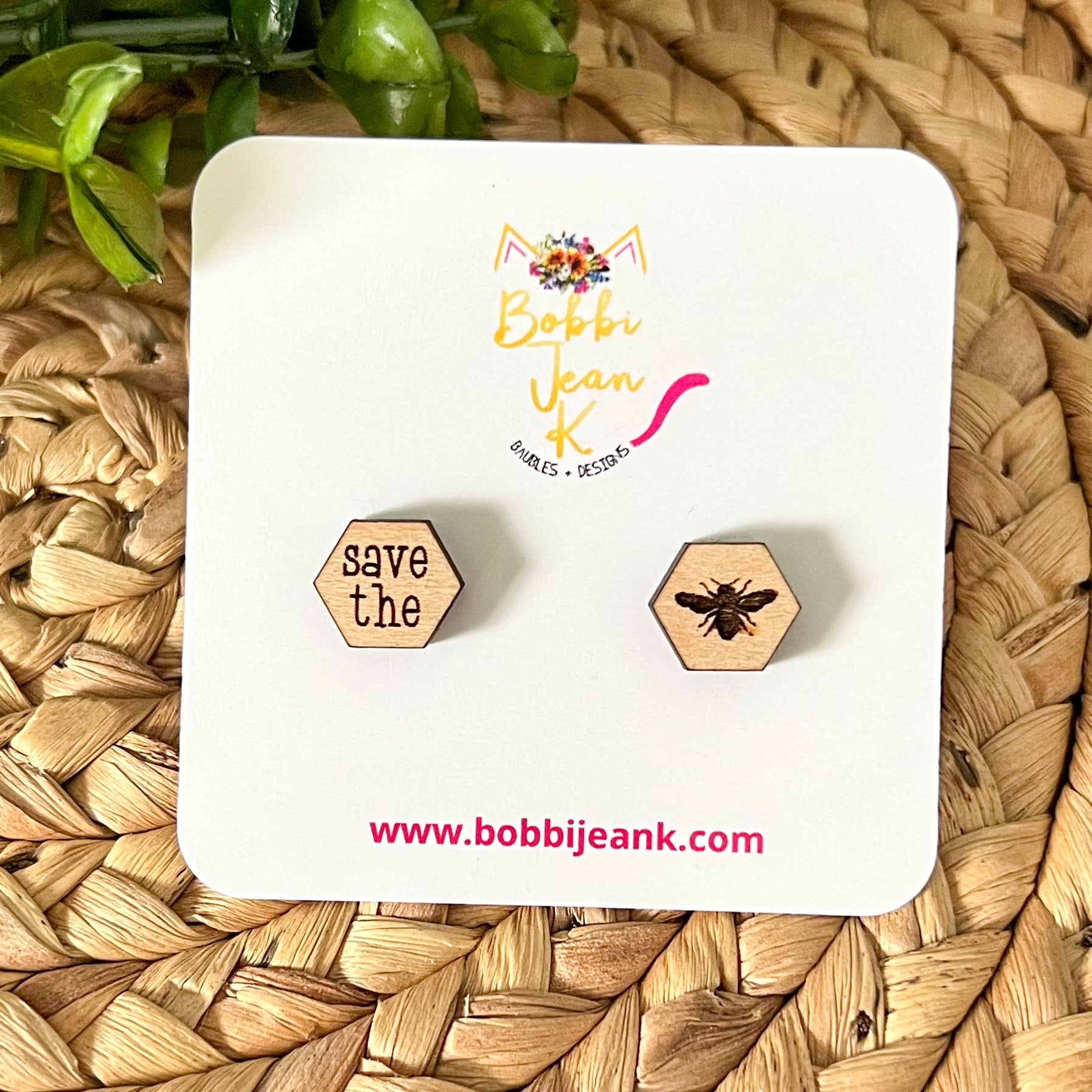 SALE: Save the Bees Wood Studs: Choose From 3 Wood Options - DESIGN BEING DISCONTINUED (Was $8)