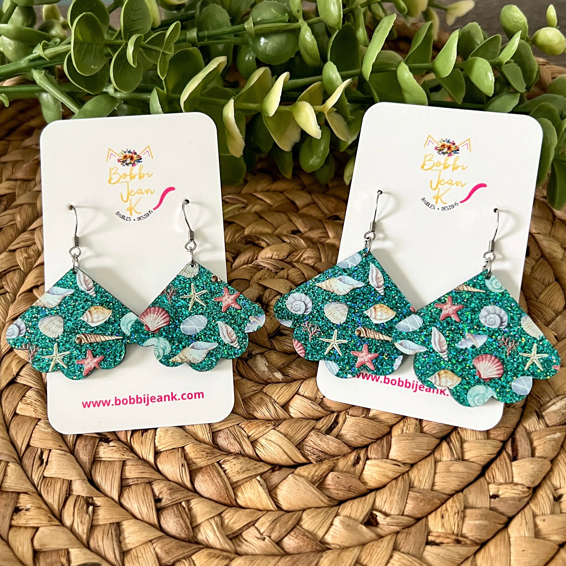 Seashell Glittered Double-Sided Shell Shape Acrylic Earrings - LAST CHANCE
