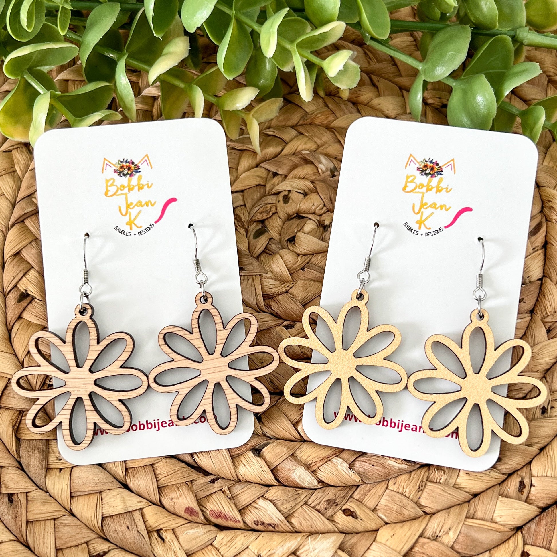 Simple Daisy Wood Earrings: Choose Light Peach or Red Oak Wood