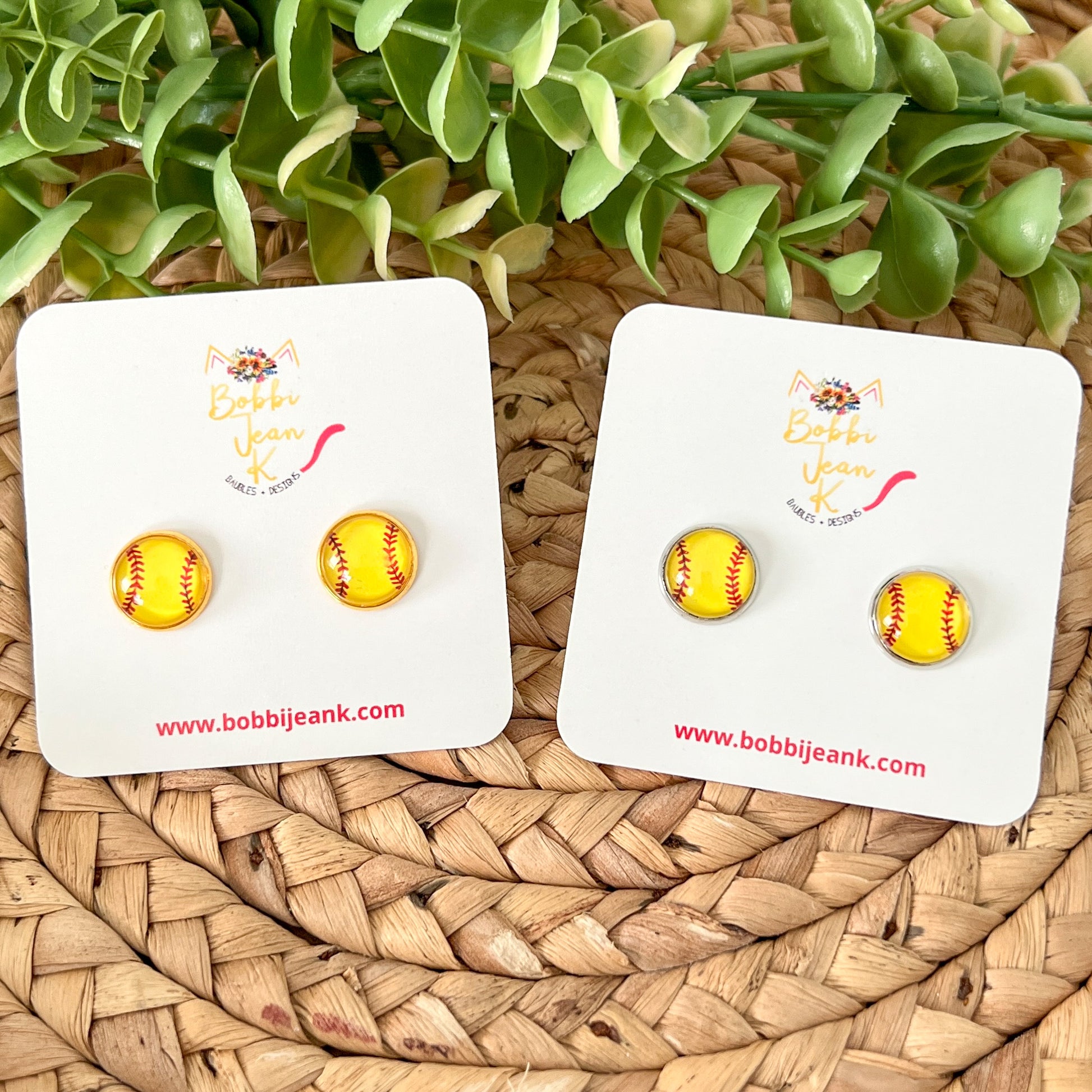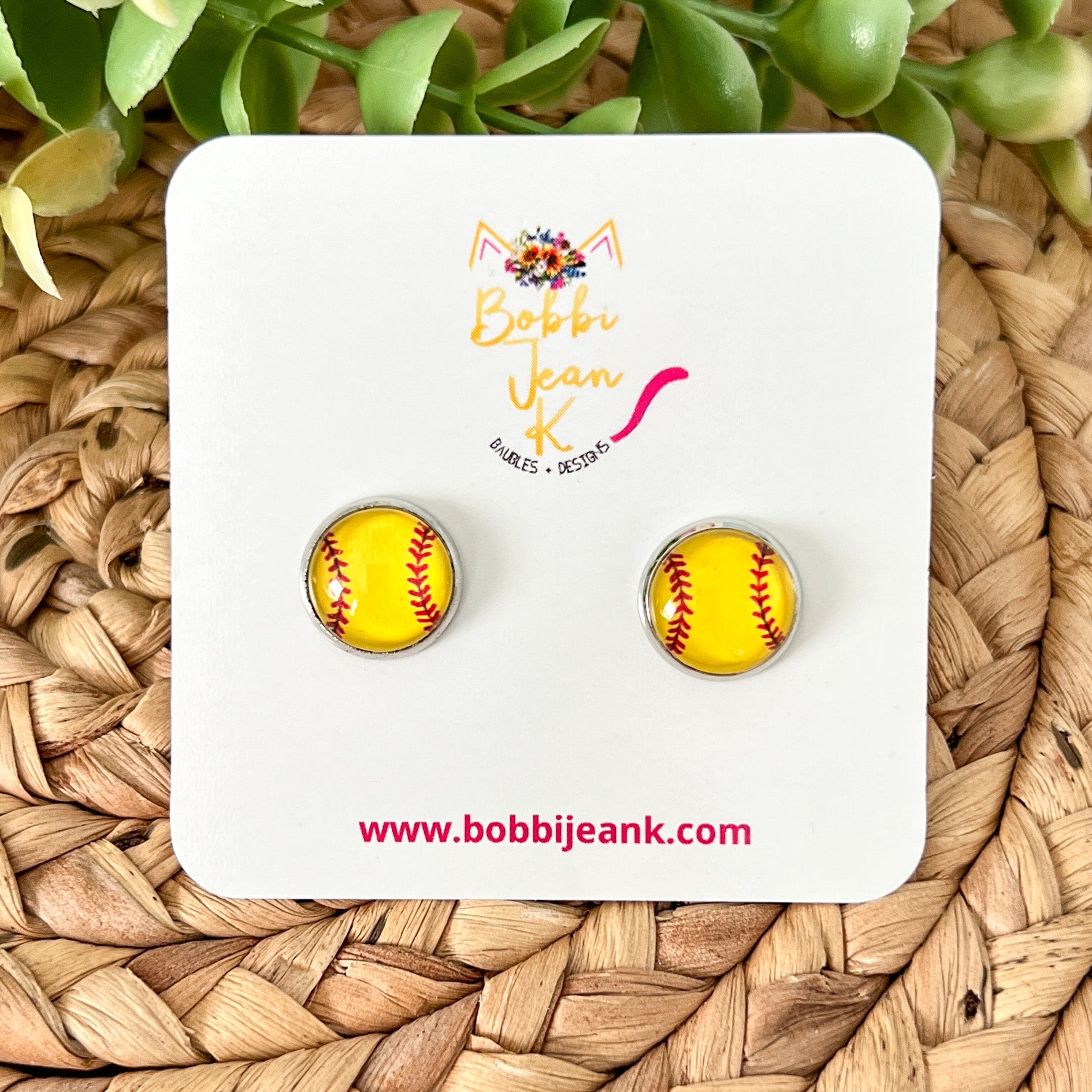 SALE: Softball Glass Studs 12mm: Choose Silver or Gold Settings - LAST CHANCE