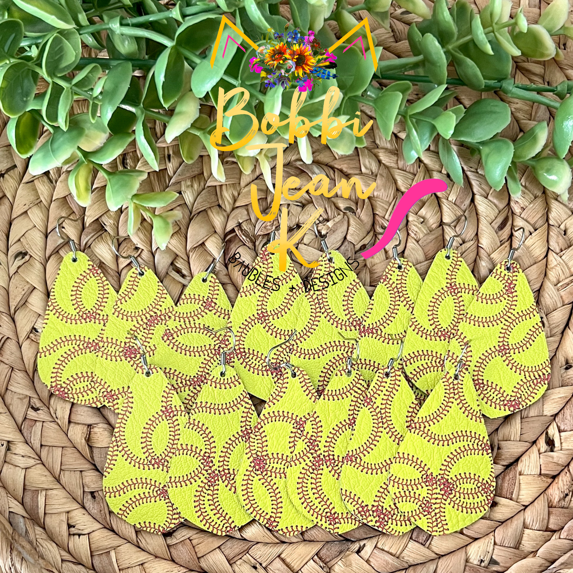 SALE: Softball Pointed Leather Teardrop Earrings - LAST CHANCE