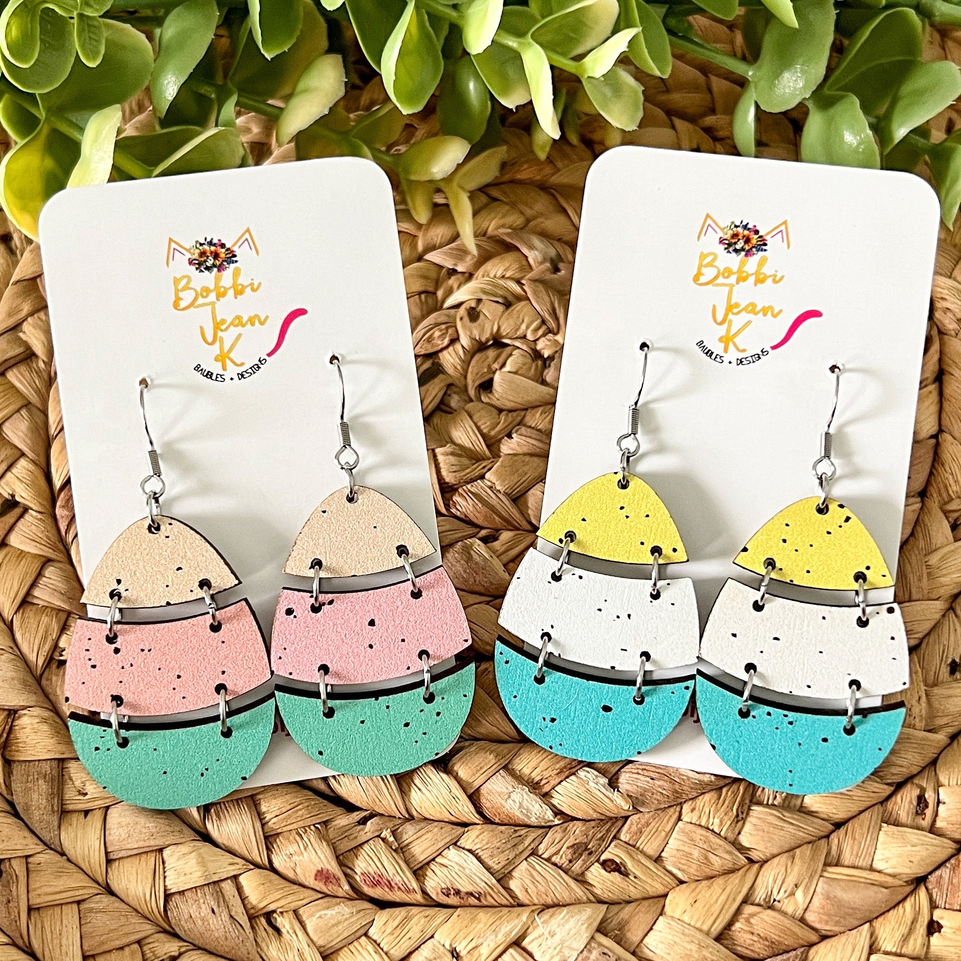 Speckled Split Egg Wood Earrings: Choose From 2 Color Options