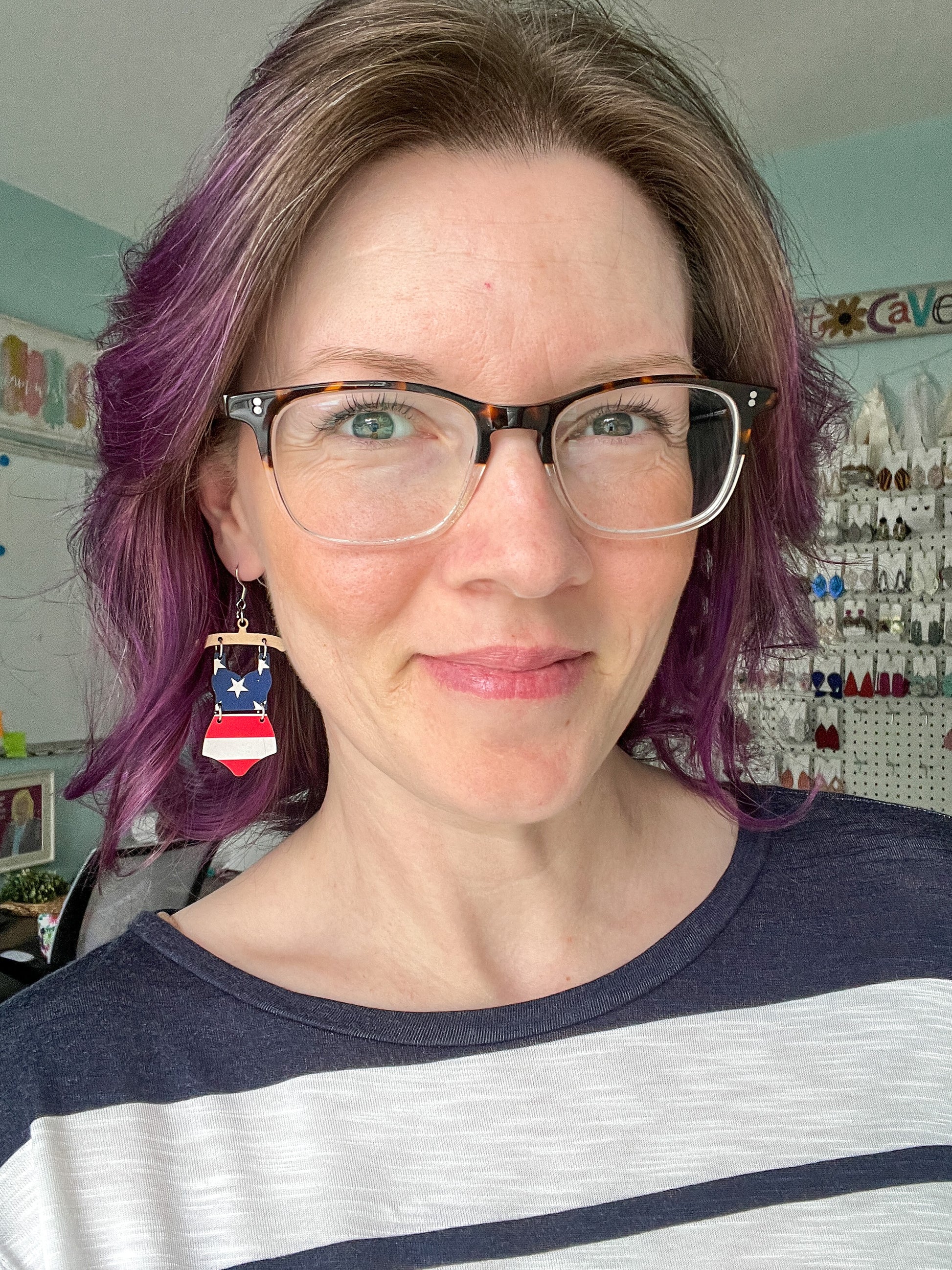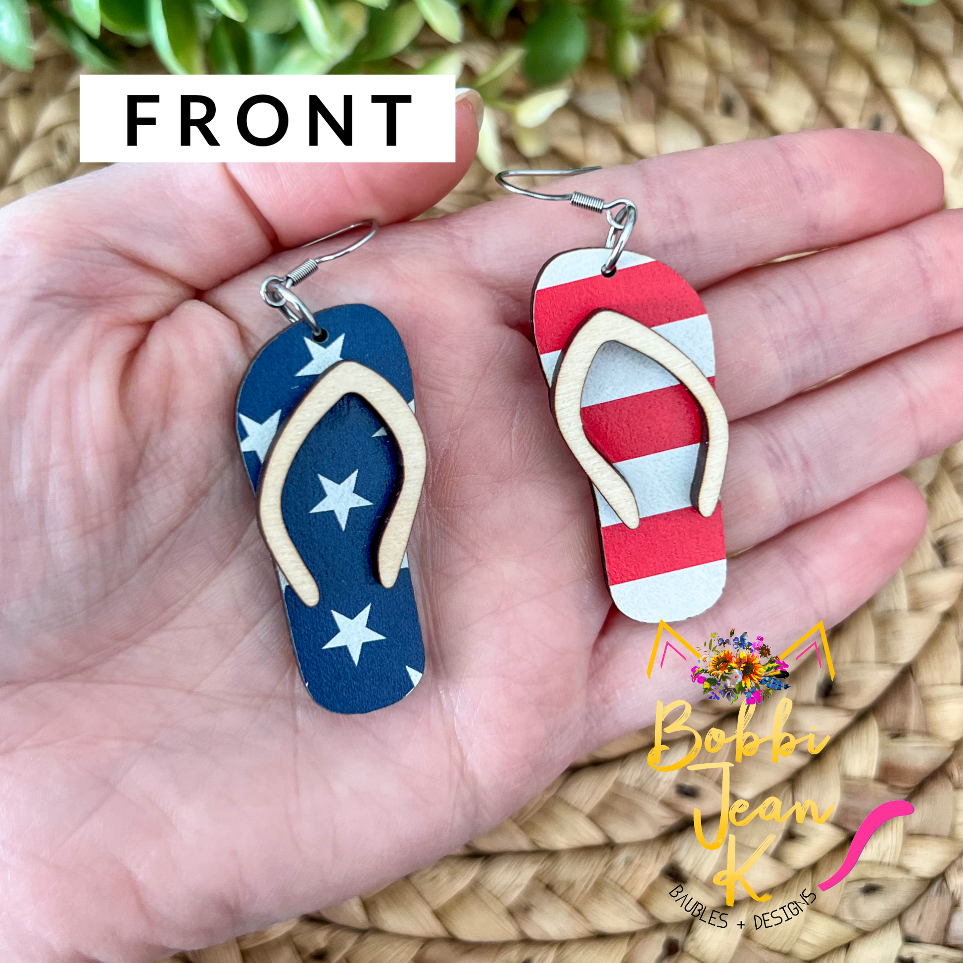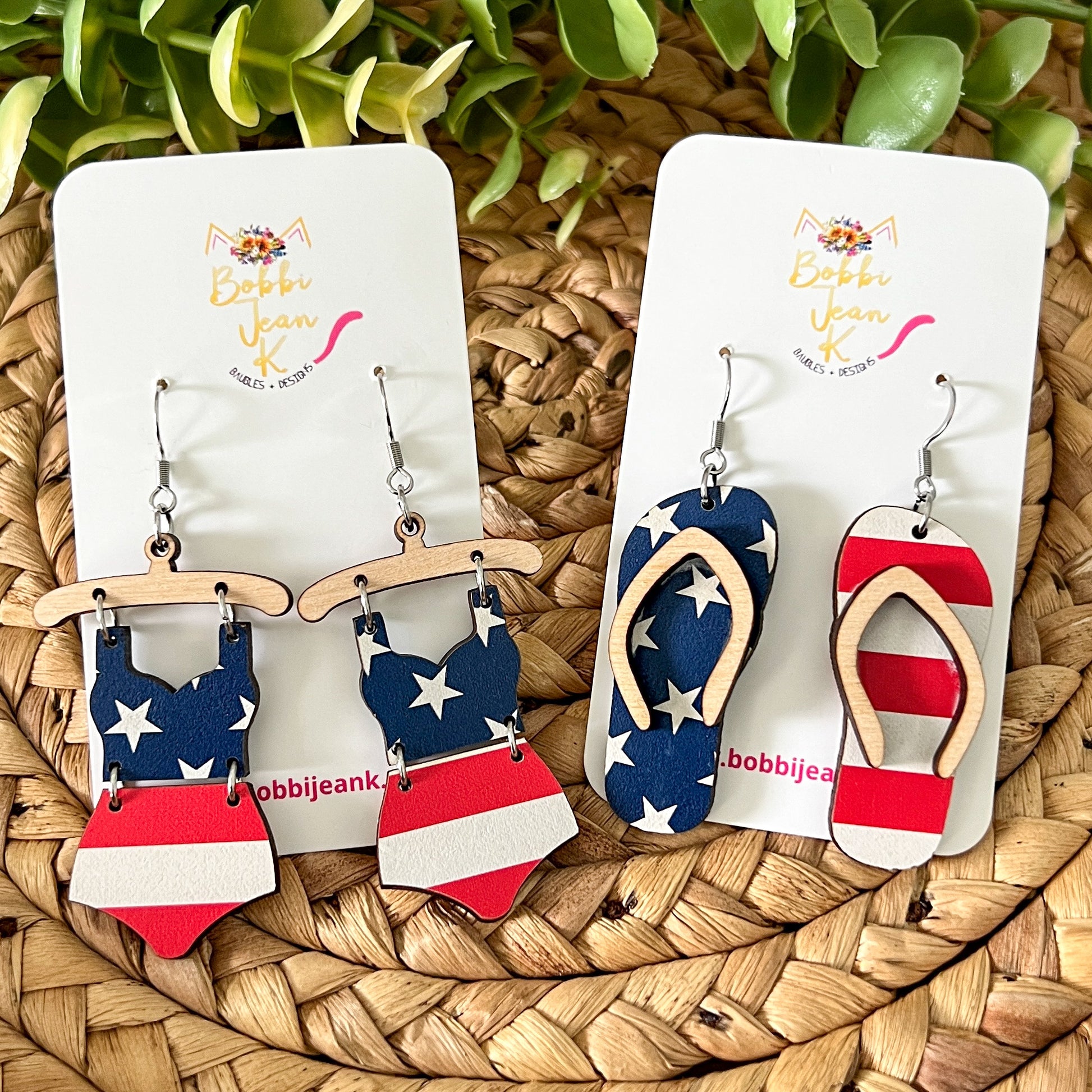 - Style: Stars & Stripes Swimsuit & Flip Flop Earrings