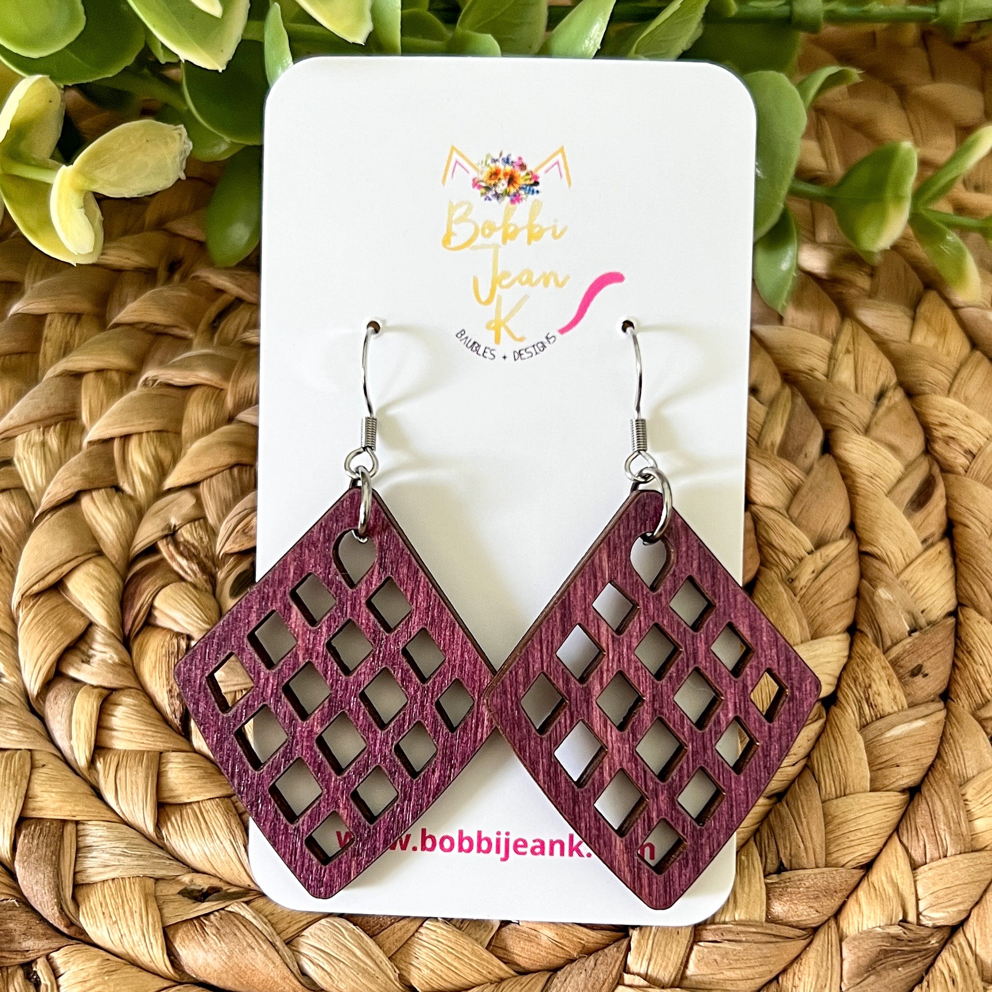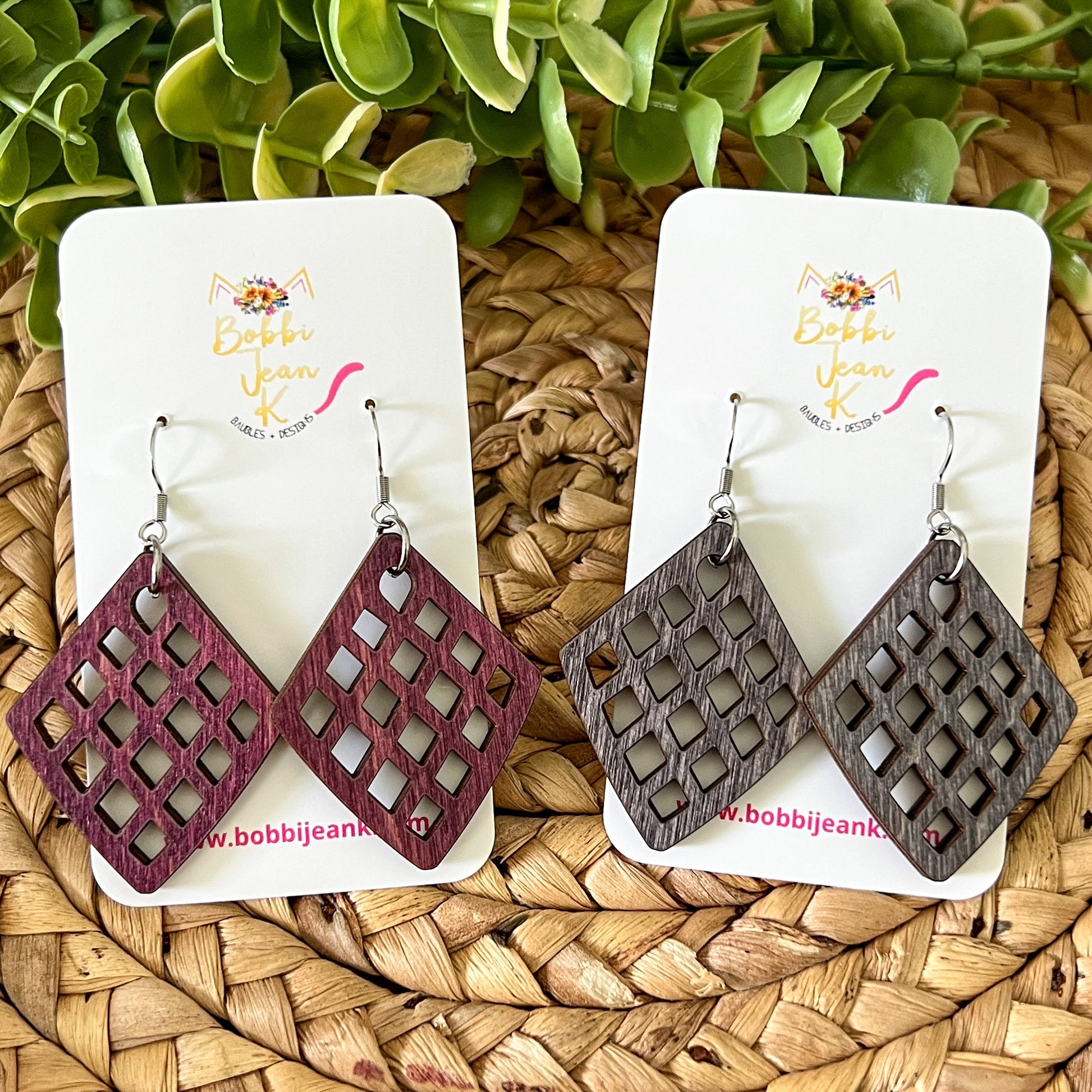 Diamond Cutout Dyed Wood Earrings: Choose From 2 Colors