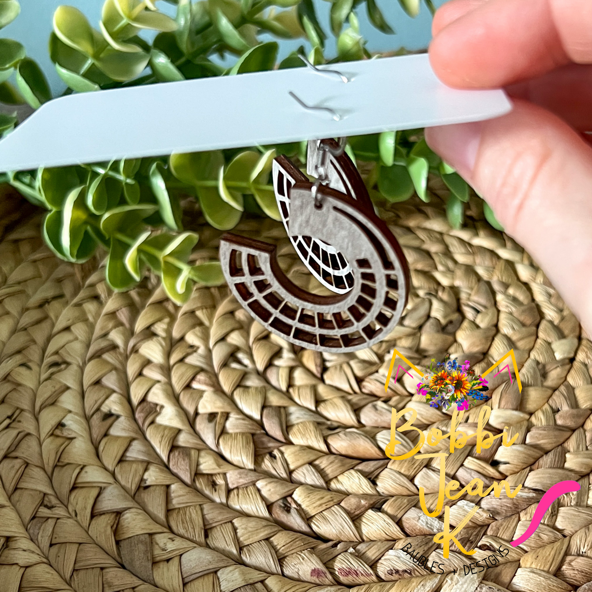 - Each pair of earrings will vary slightly with the wood grain and dyed coloring, but each pair will look very similar to the photos shown here.