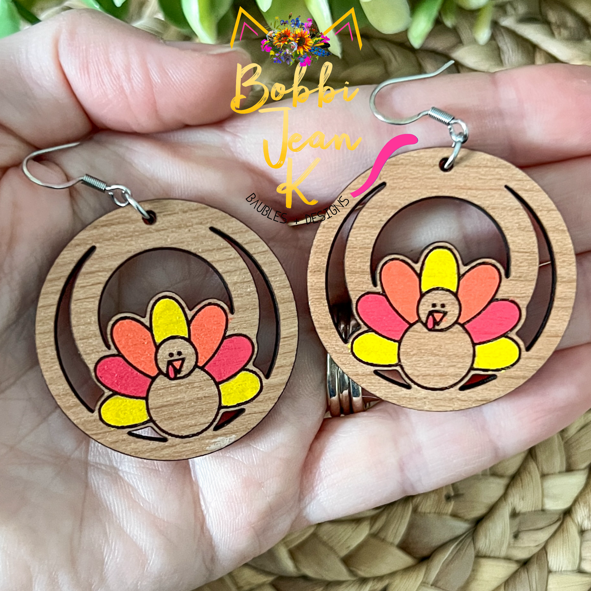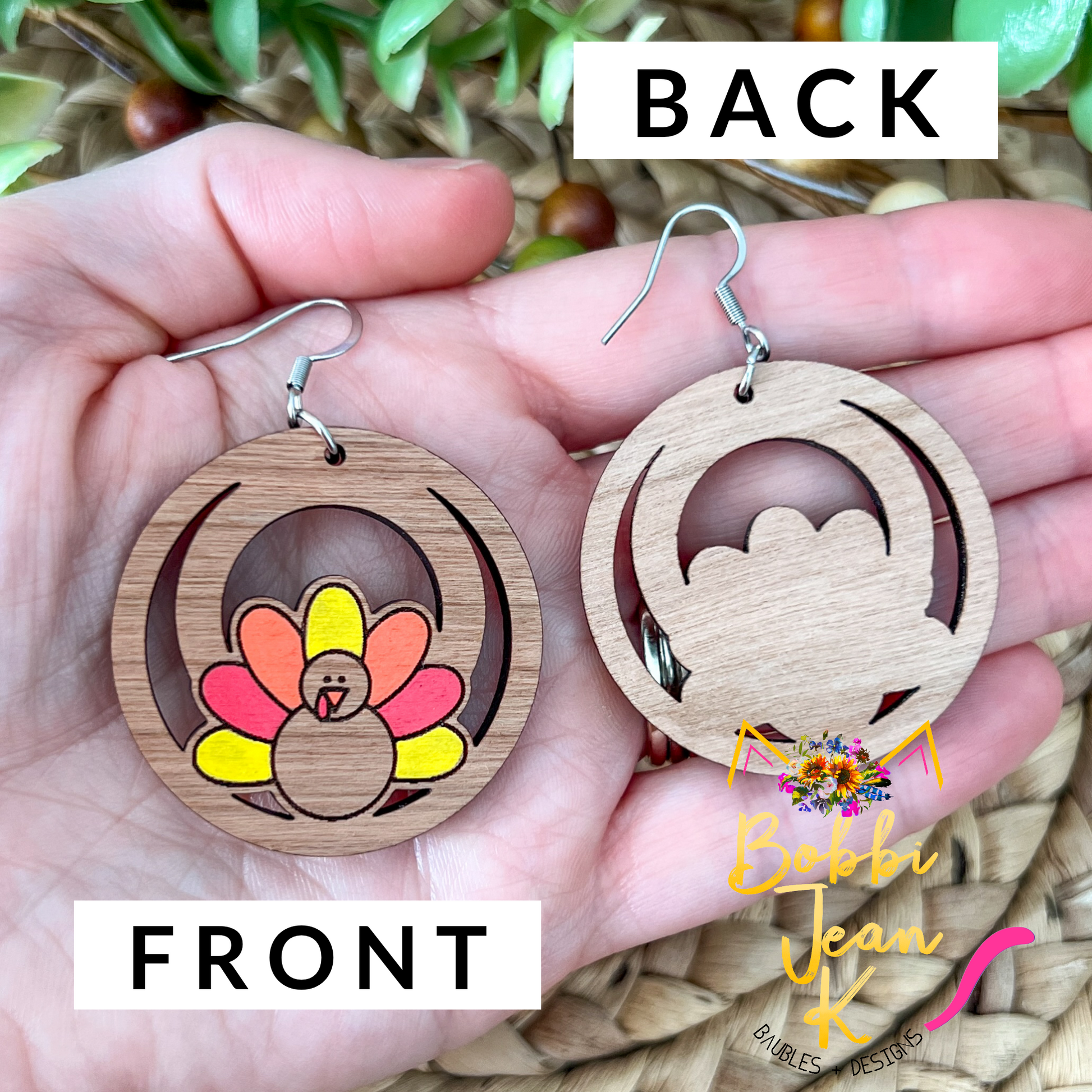 - Each pair of earrings will vary slightly with the wood grain, but each pair will look very similar to the photos shown here.