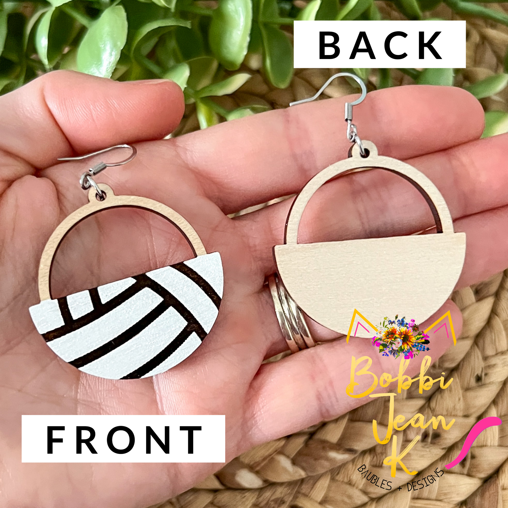 SALE: Volleyball Circular Wood Earrings - Hand Painted - LAST CHANCE