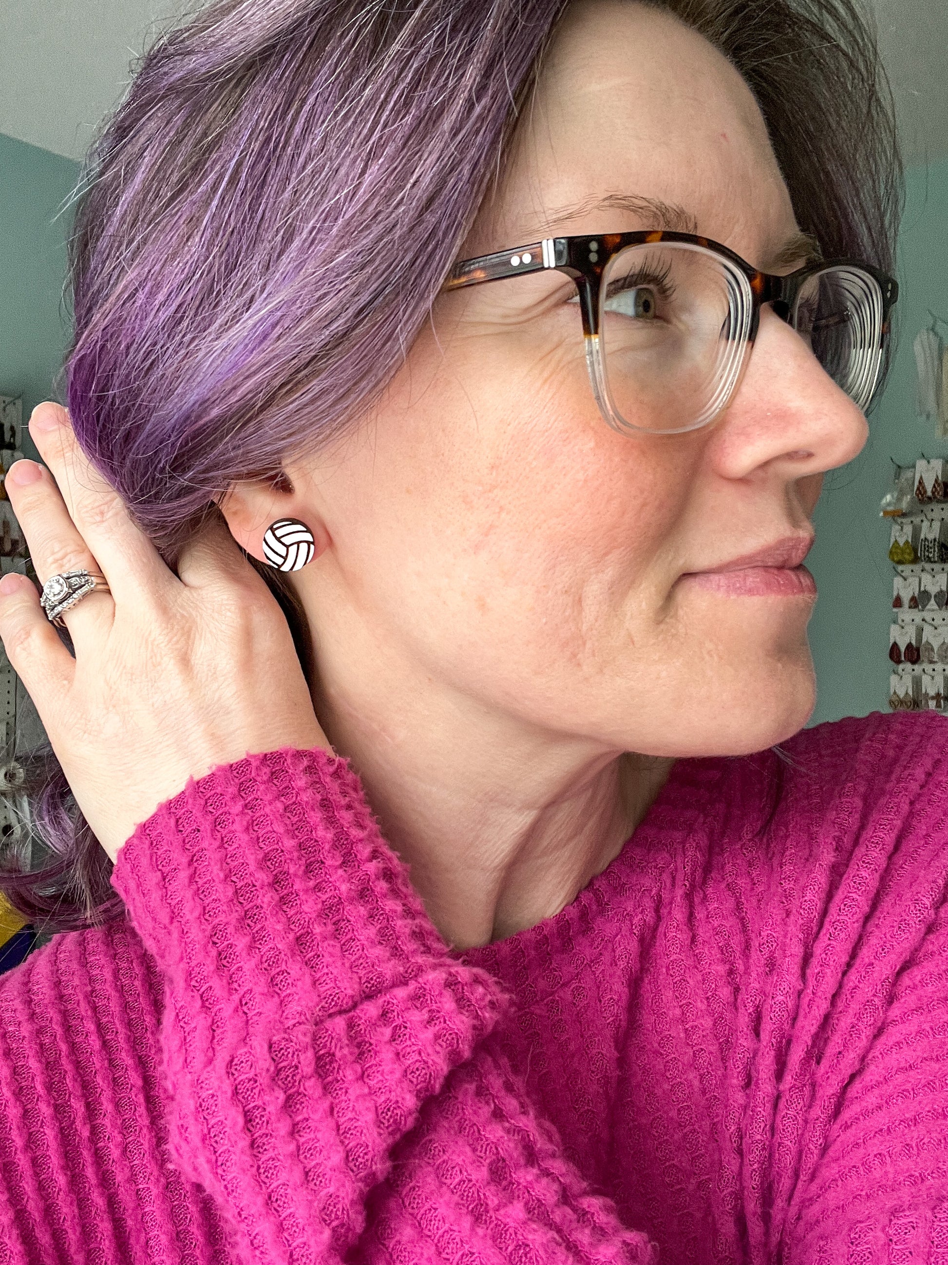 SALE: Volleyball Wood Studs - Hand Painted - LAST CHANCE