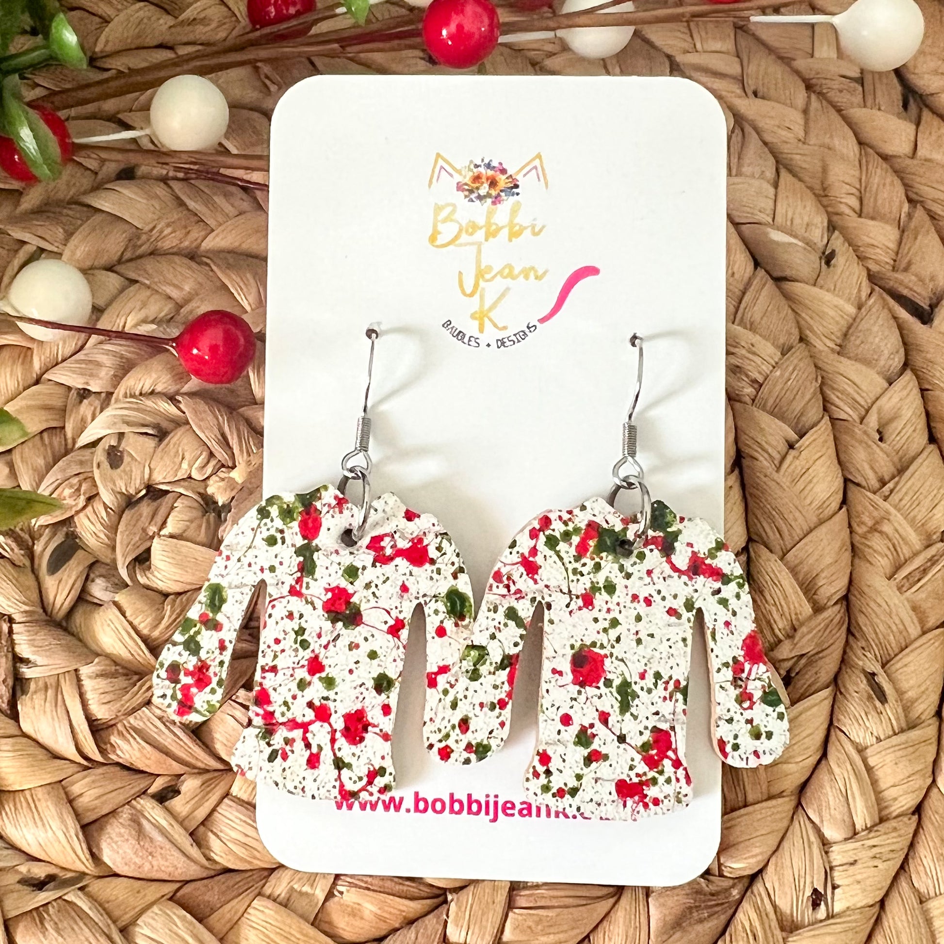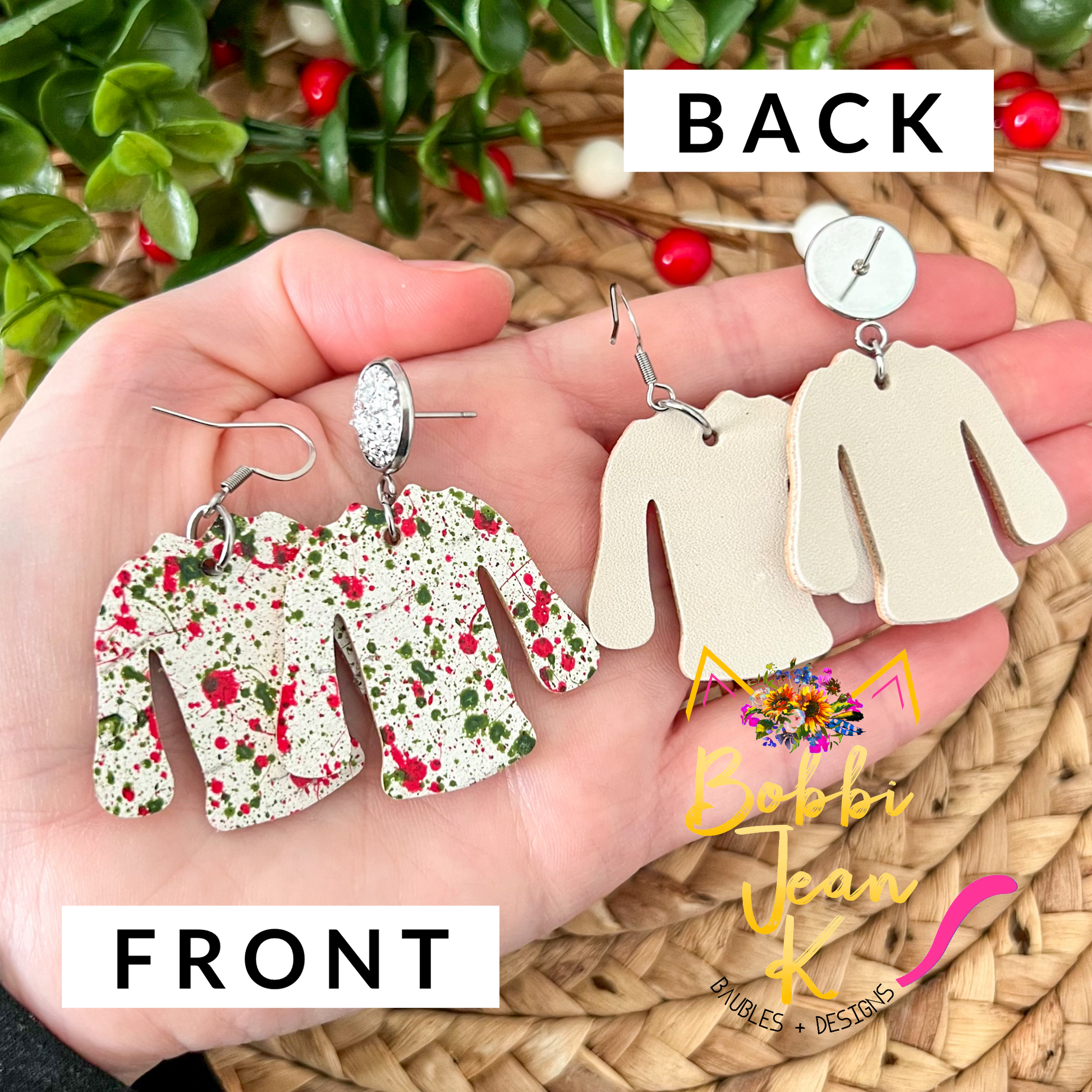 White Paint Splatter "Ugly" Sweater Cork on Leather Earrings - ONLY ONE OF EACH LEFT