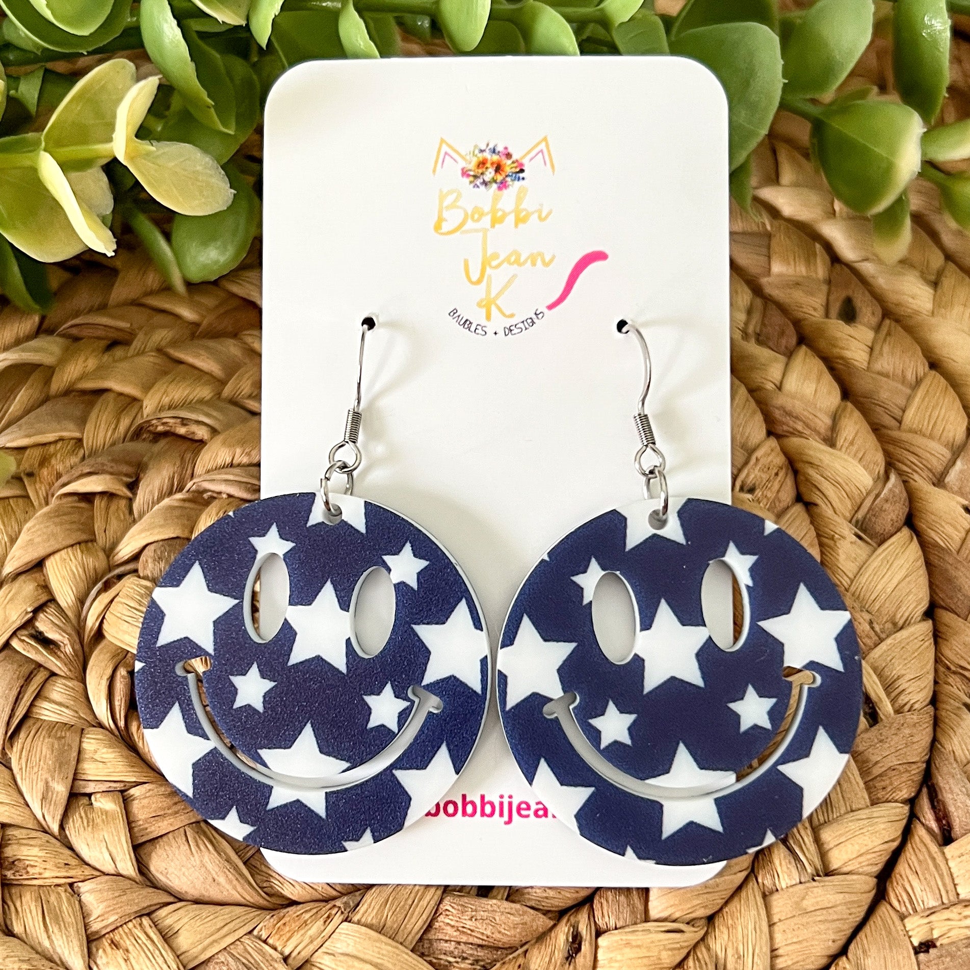 White Stars on Navy Acrylic Earrings: Choose From 3 Styles