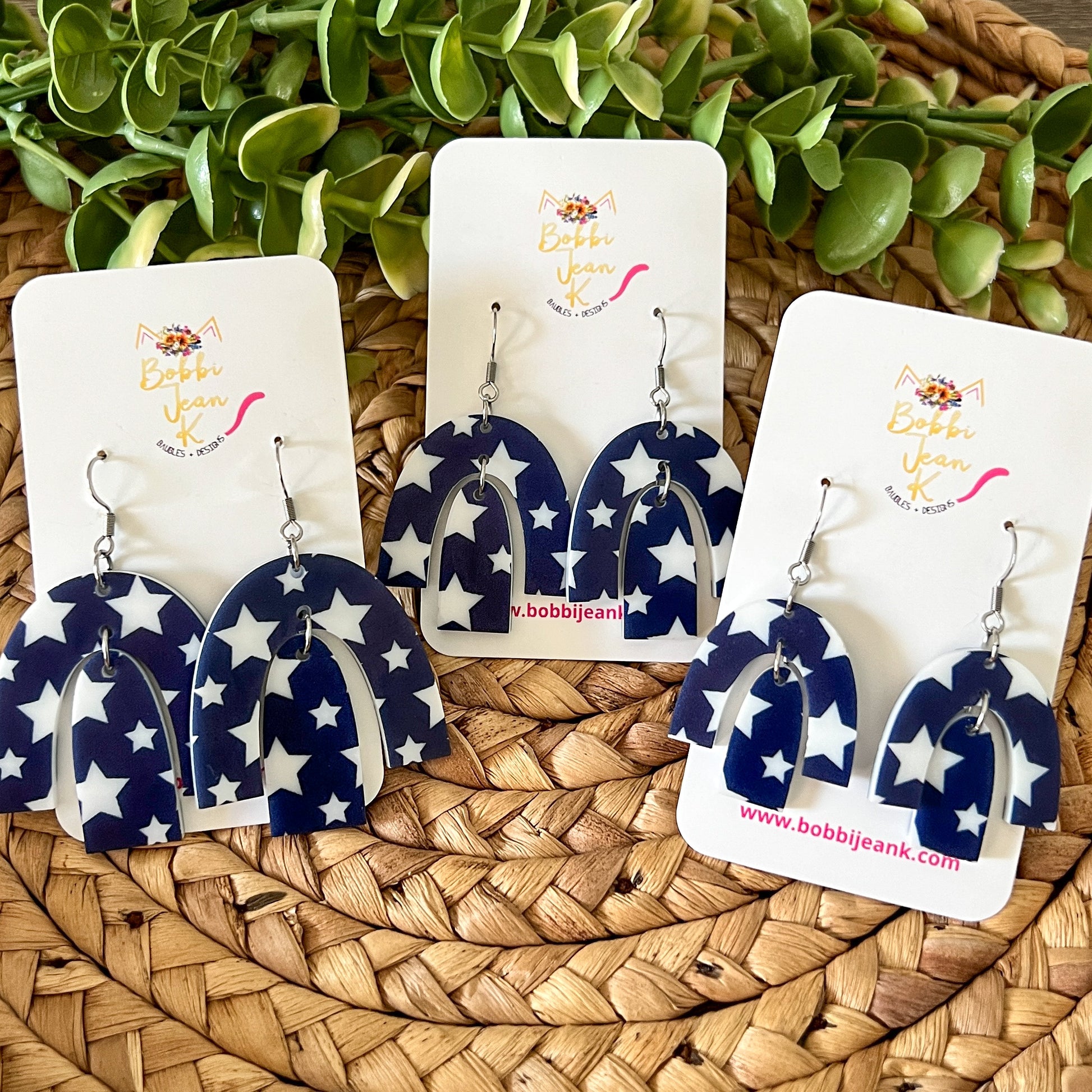 White Stars on Navy Rainbow Arch Acrylic Earrings: Choose from 3 Sizes