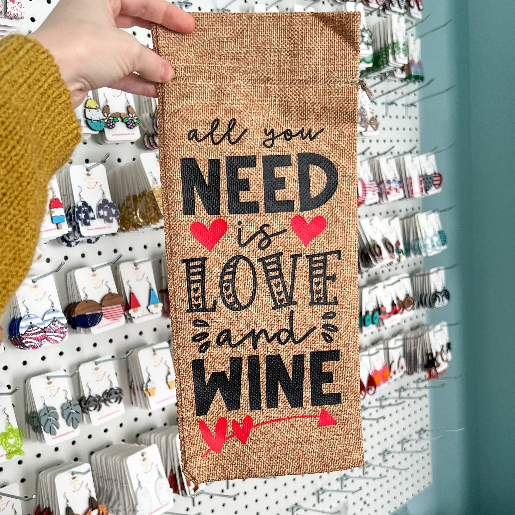 SALE: Wine Gift Bag: All You Need is Love and Wine - Natural - ONLY ONE AVAILABLE