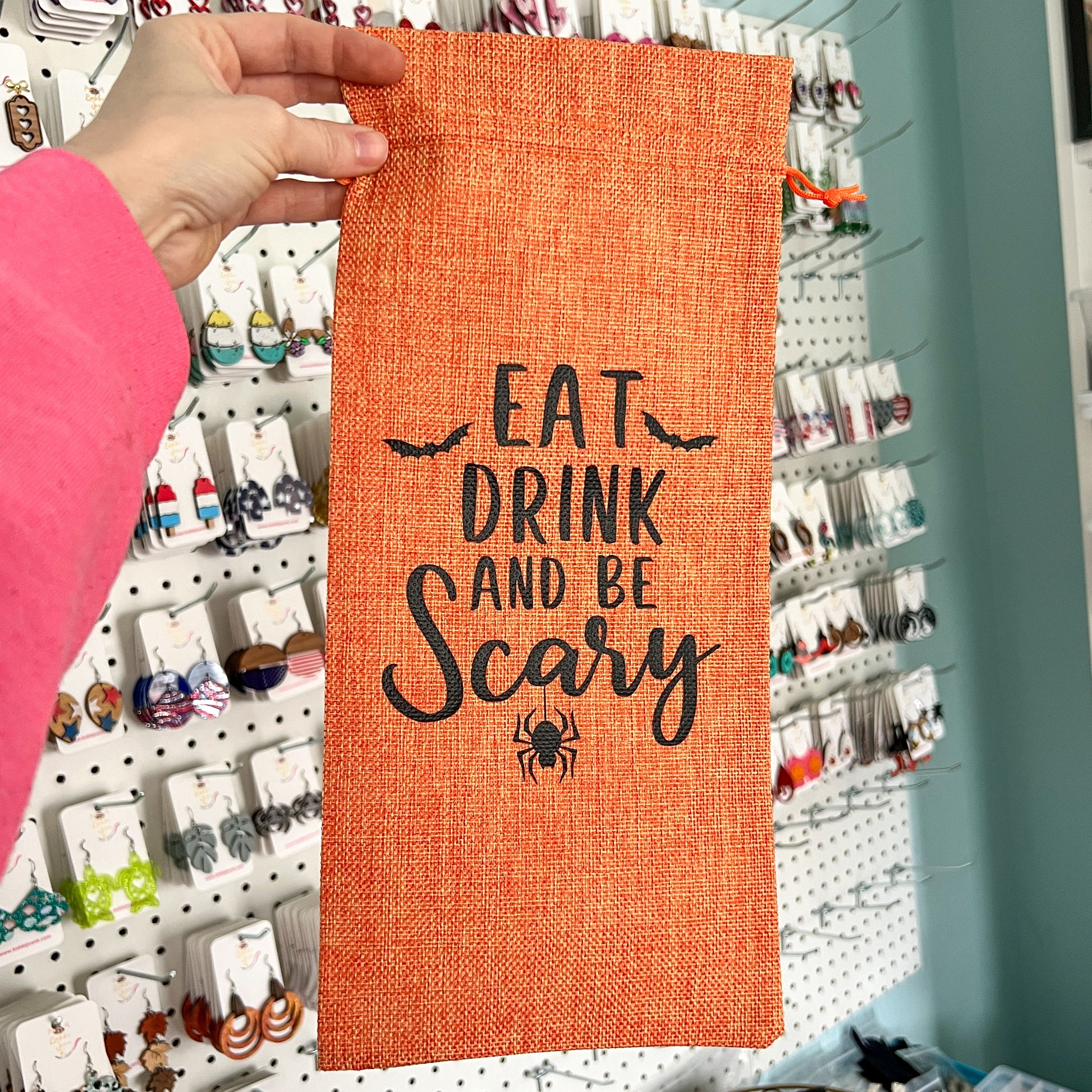 SALE: Wine Gift Bag: Eat Drink And Be Scary - Orange - ONLY 2 AVAILABLE