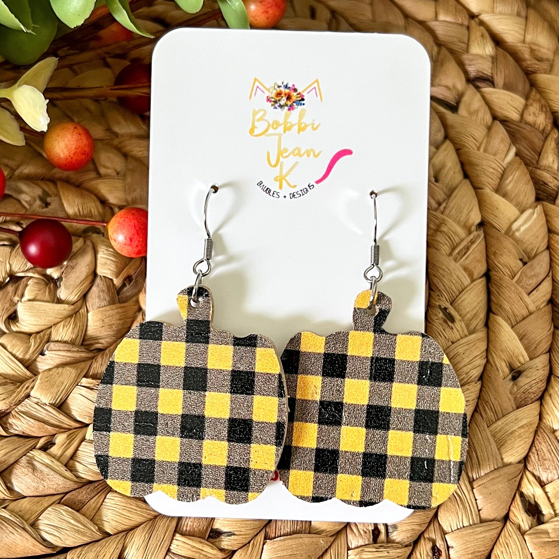 SALE: Yellow & Black Plaid Pumpkin Earrings - LAST CHANCE