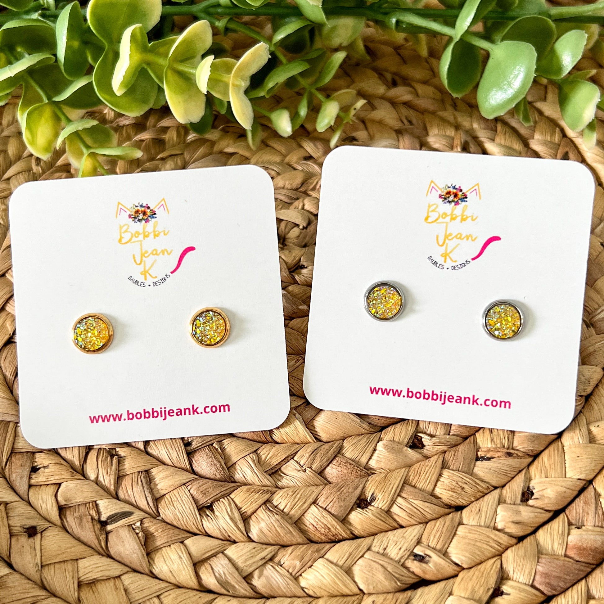 SALE: Yellow Faux Druzy Studs 8mm: Choose Silver or Gold Settings