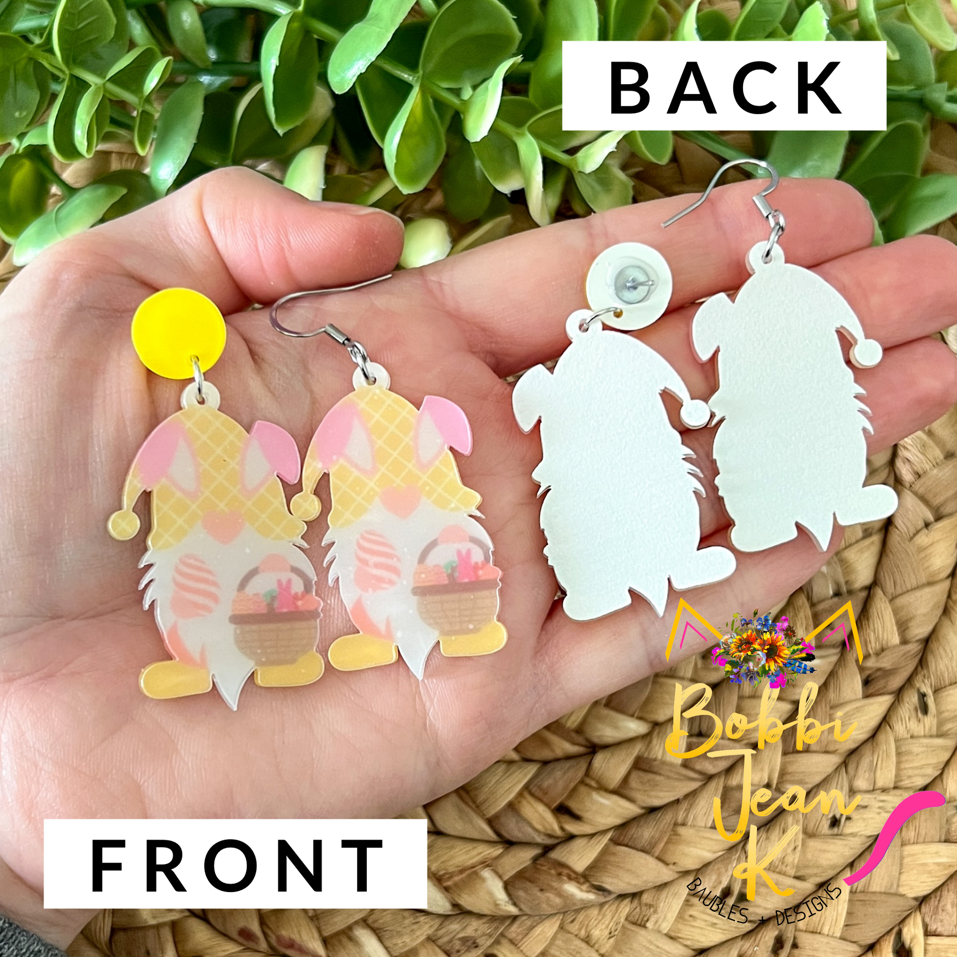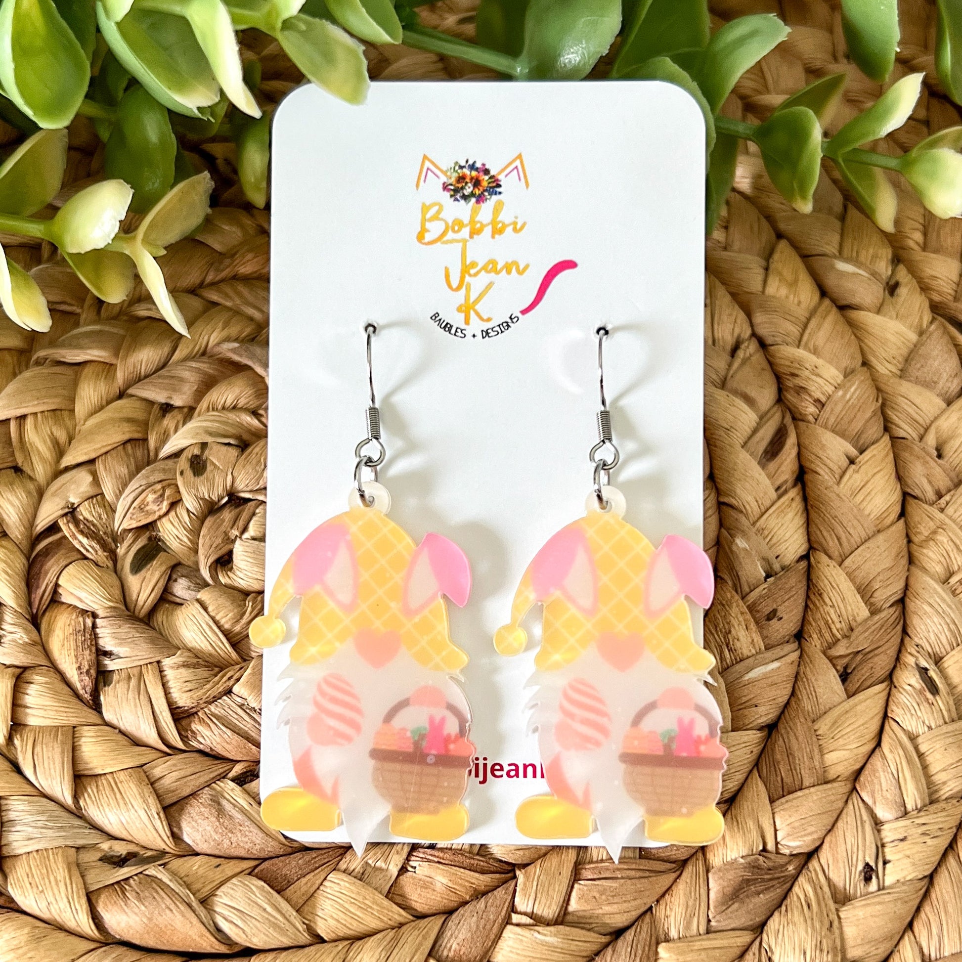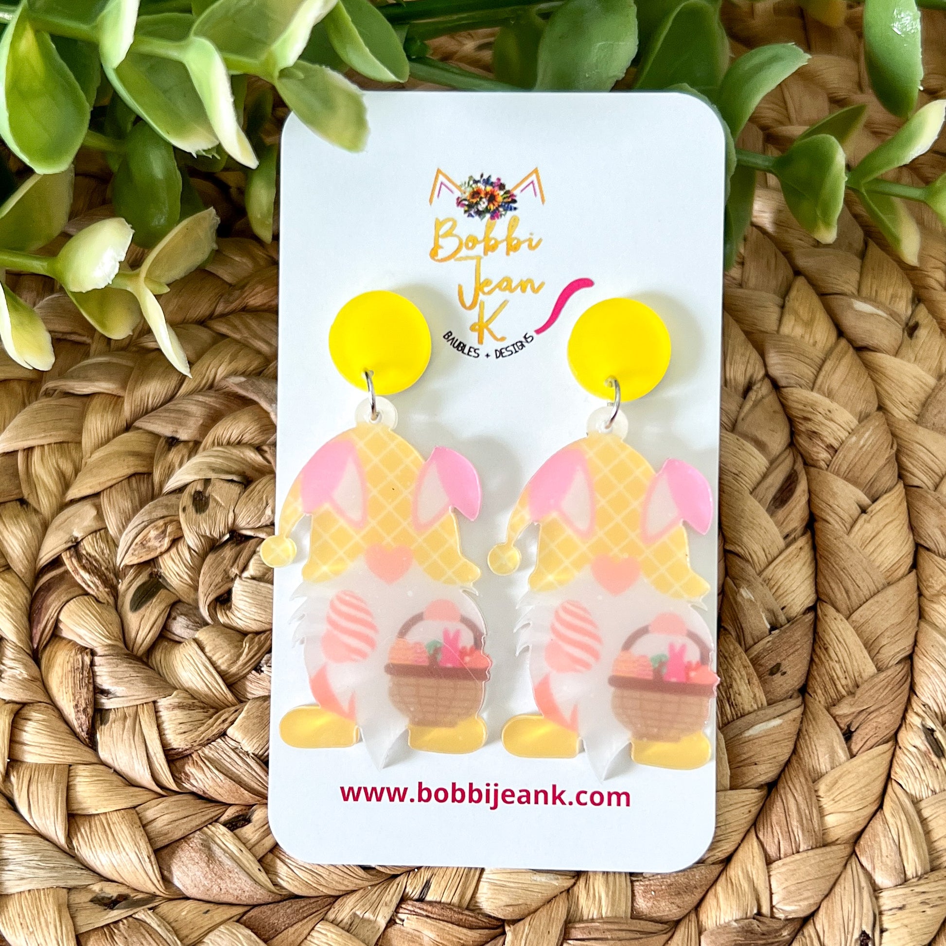 - Style: Yellow Gnome with Basket Acrylic Dangle Earrings